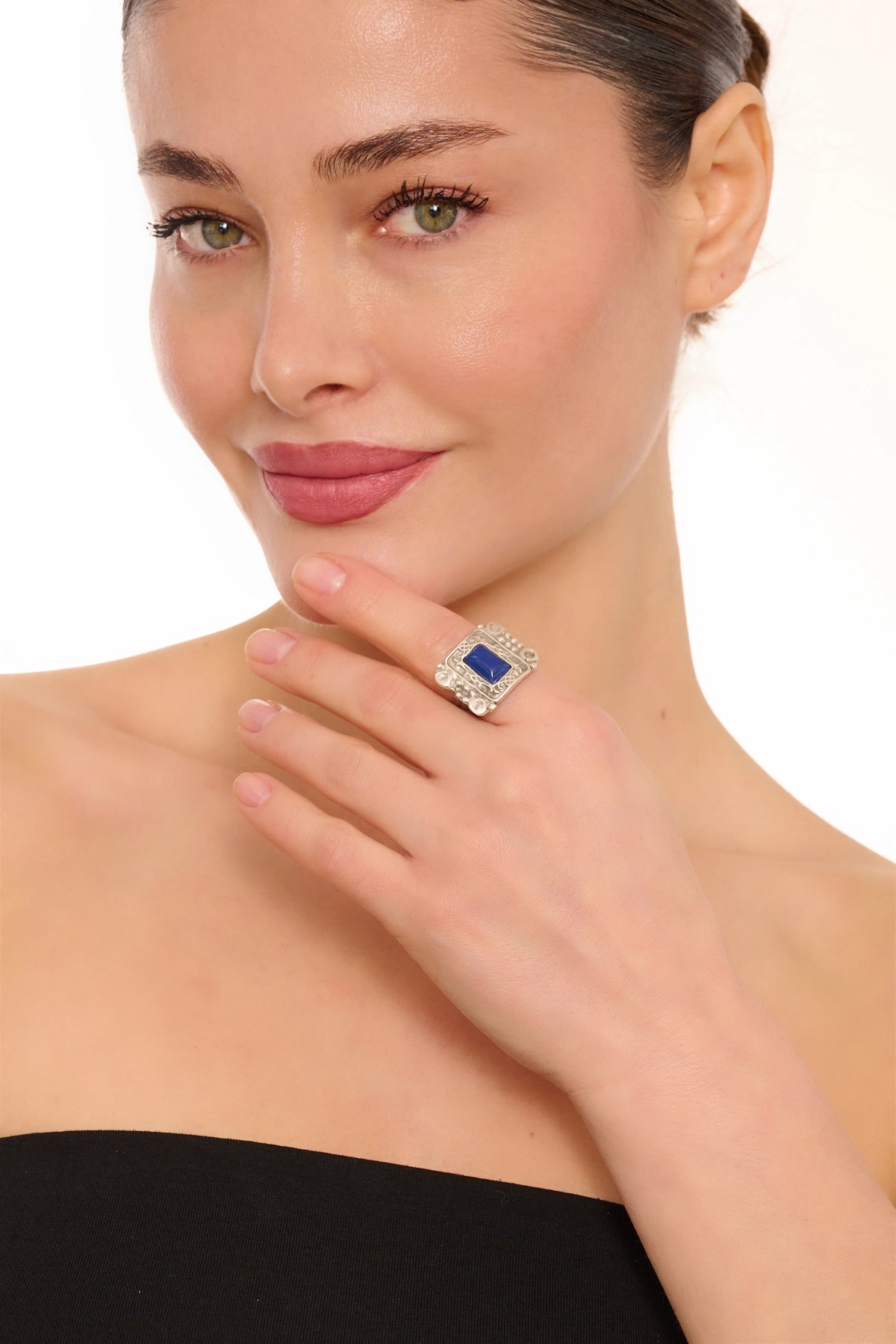 Kiraz Green Stoned Silver Plated Eye Ring