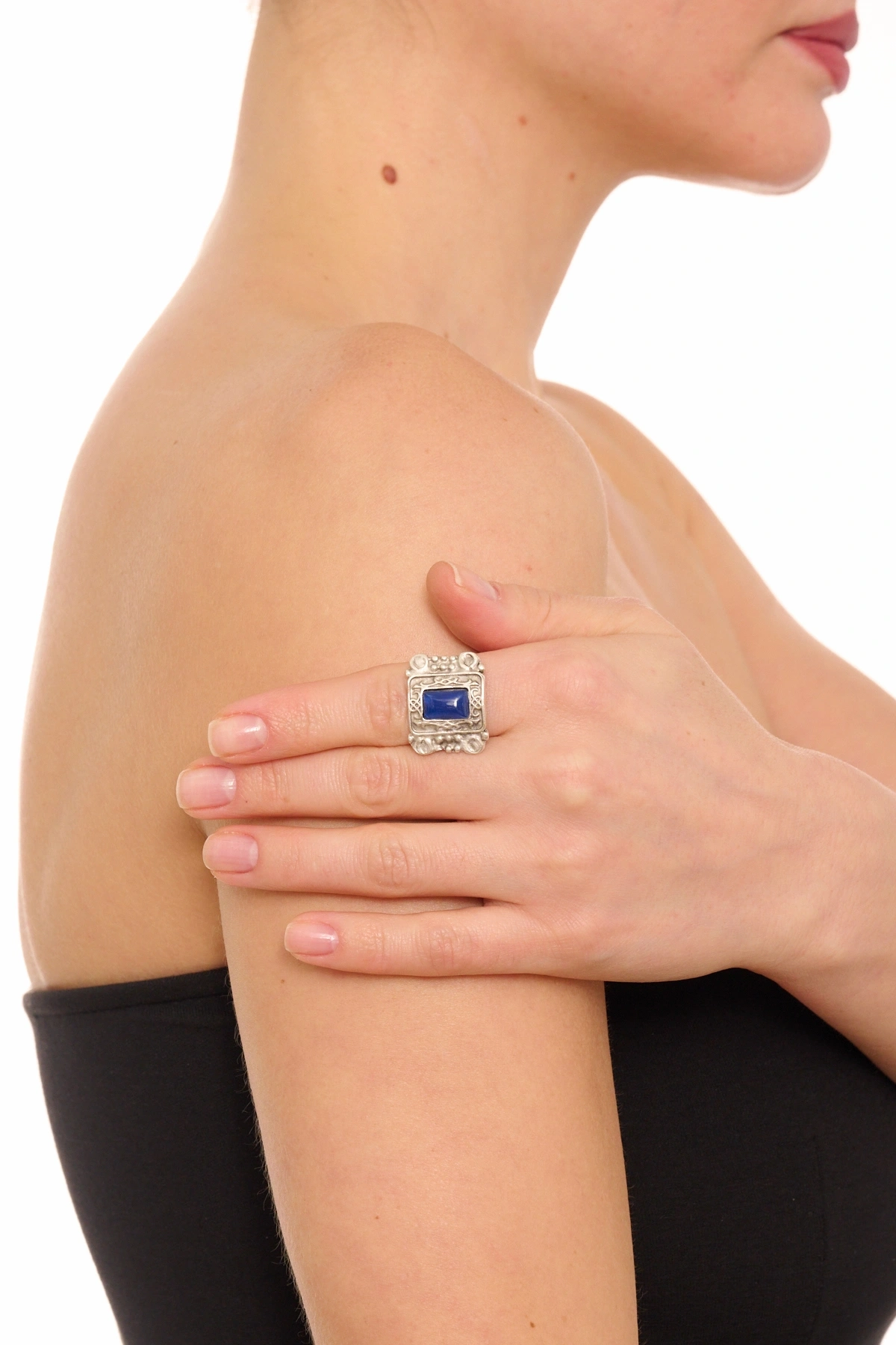 Kiraz Navy Blue Stoned Silver Plated Ring