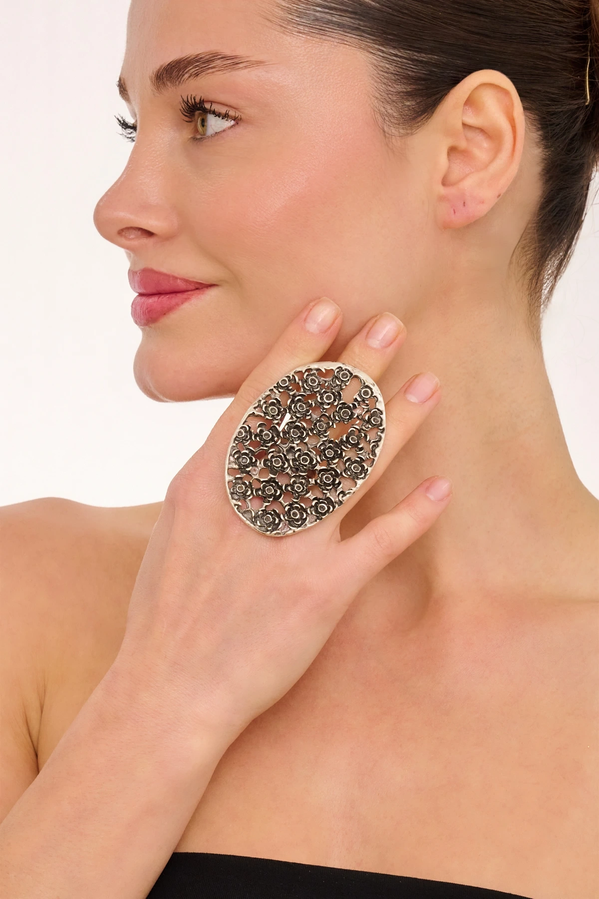 Kiraz Hematite Crystal Stoned Gold Plated Ring