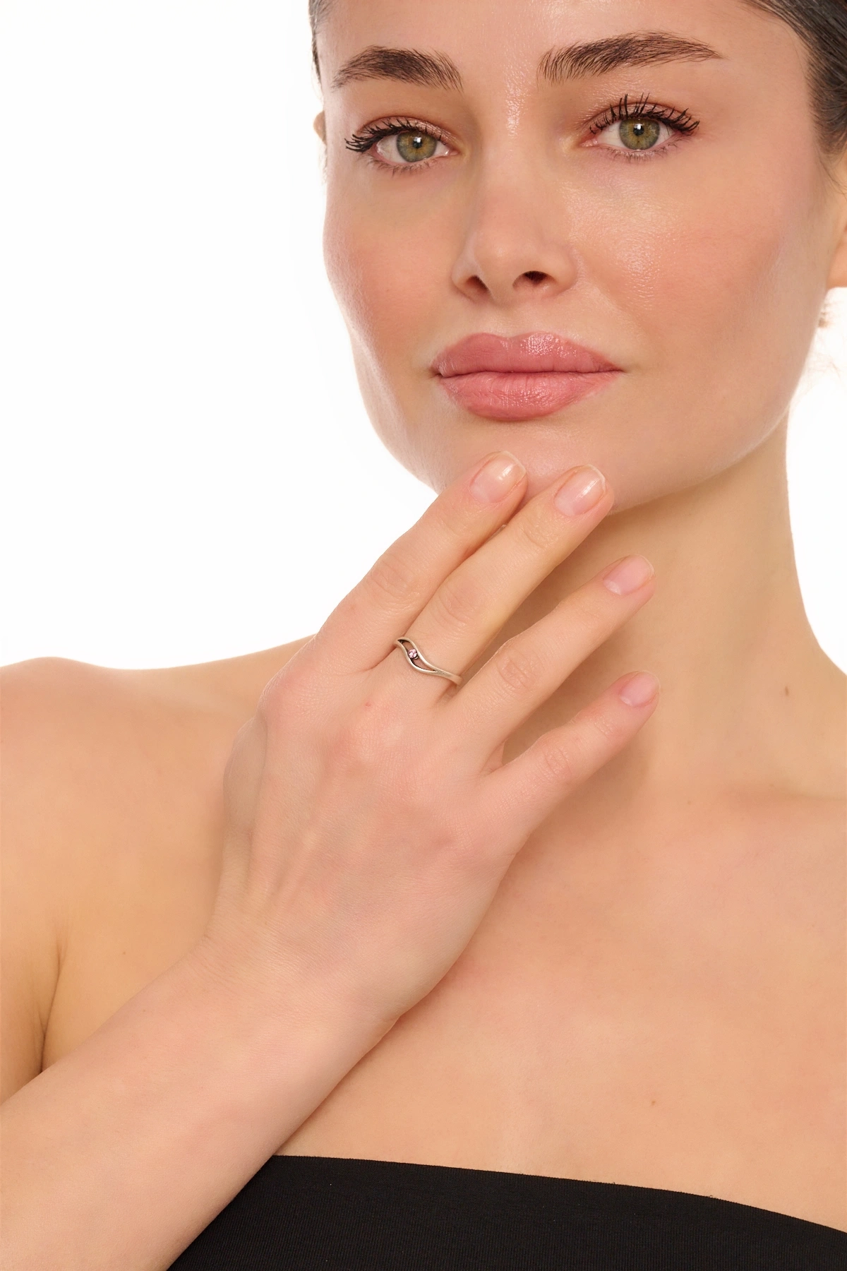 Kiraz Black Crystal Stoned Silver Plated Ring