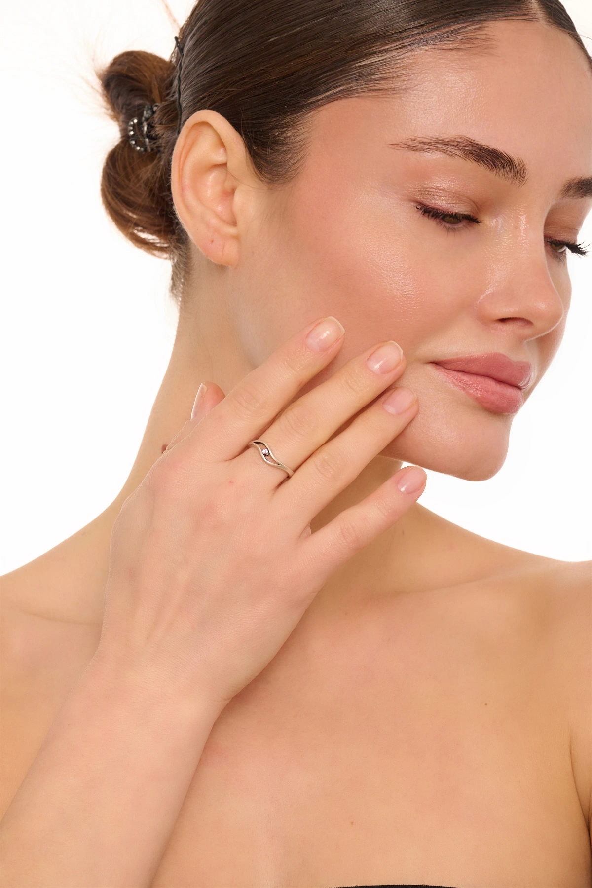 Kiraz Purple Crystal Stoned Silver Plated Ring