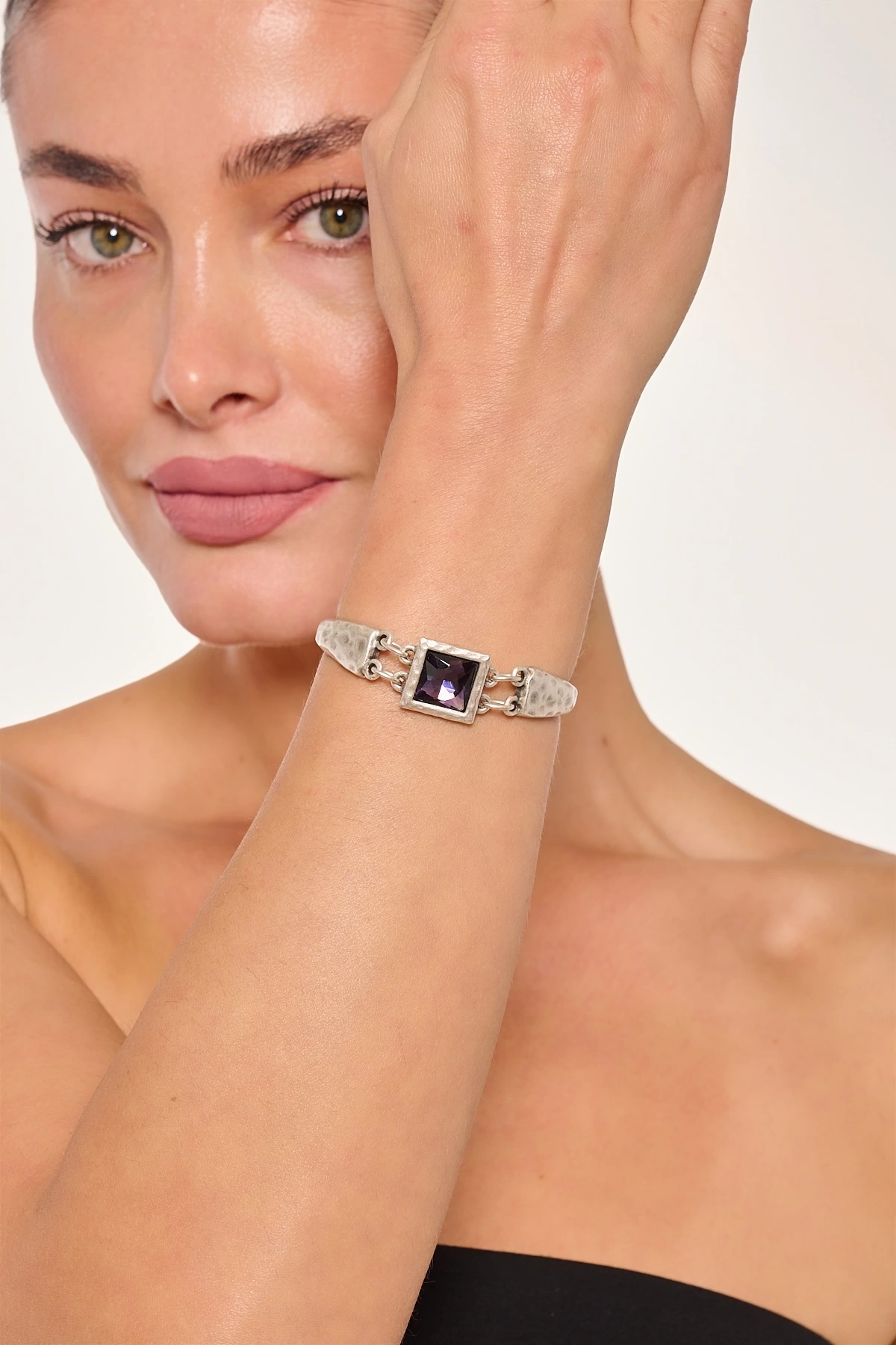 Kiraz Purple Crystal Stoned Silver Plated Bracelet