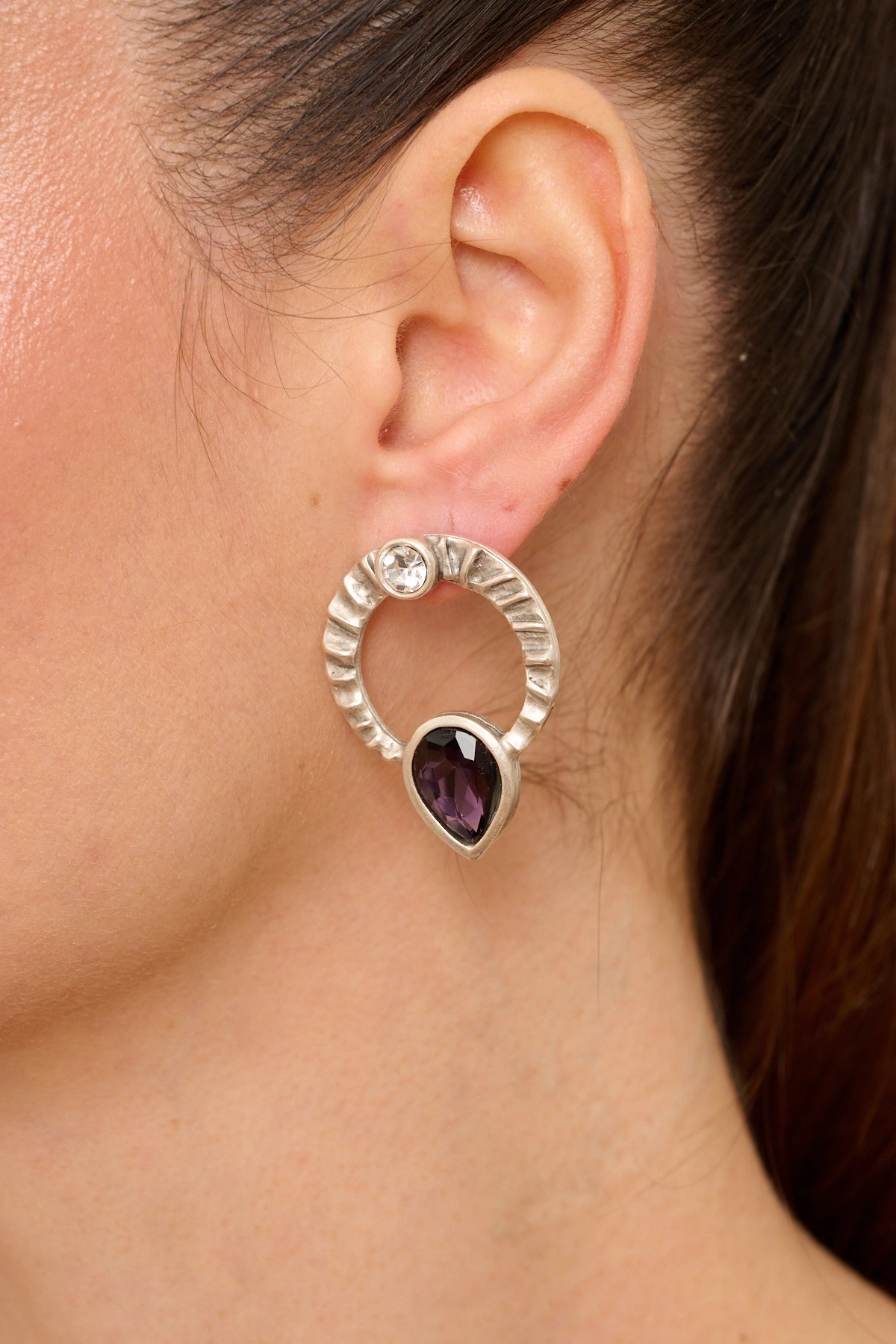 Kiraz Purple Crystal Stoned Silver Plated Earring