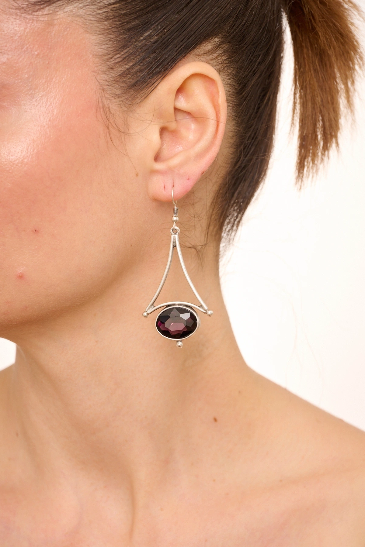 Kiraz Burgundy Crystal Stoned Silver Plated Earring