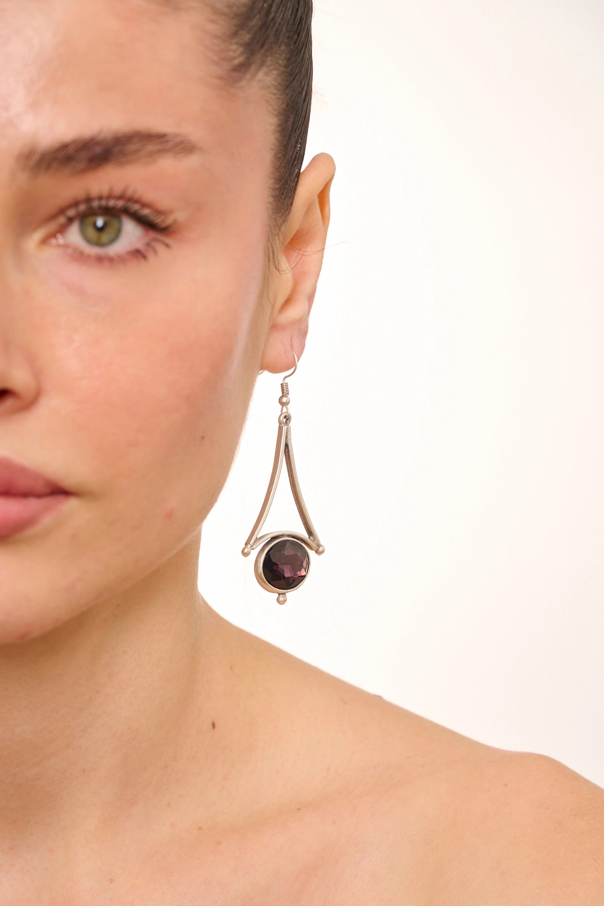 Kiraz Purple Crystal Stoned Silver Plated Earring