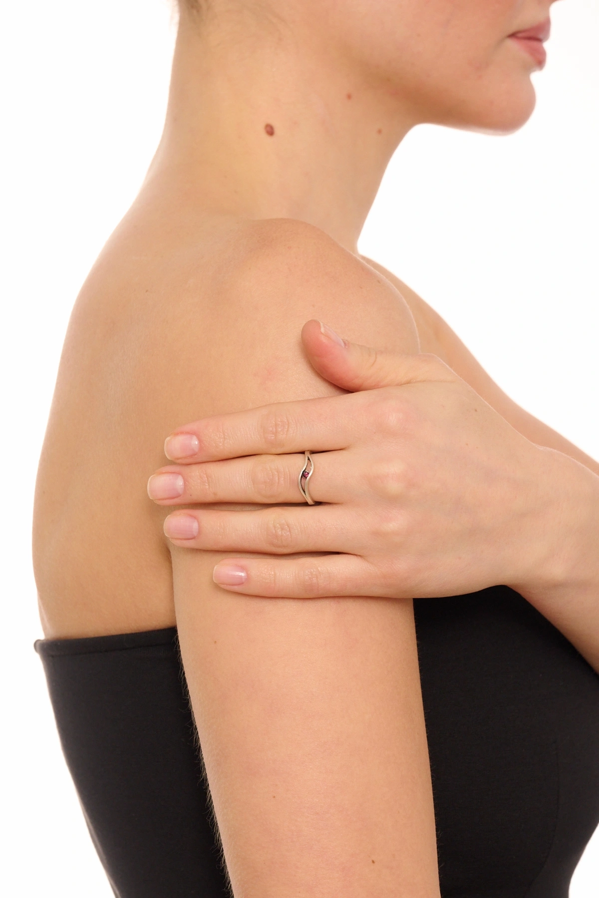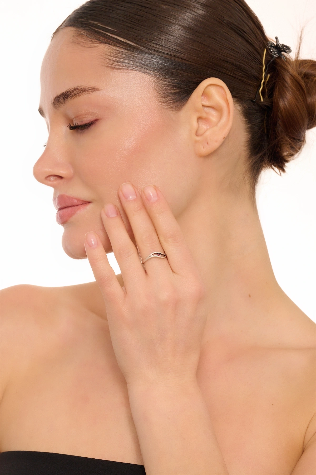Kiraz Burgundy Stoned Silver Plated Eye Ring