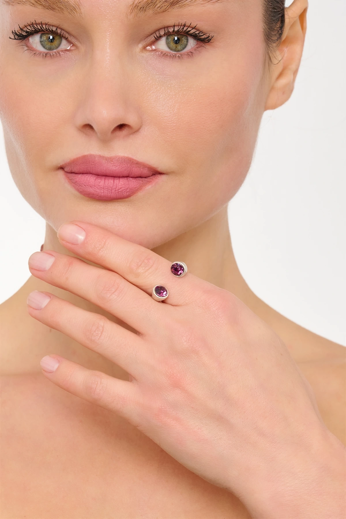 Kiraz Purple Crystal Stoned Silver Plated Ring