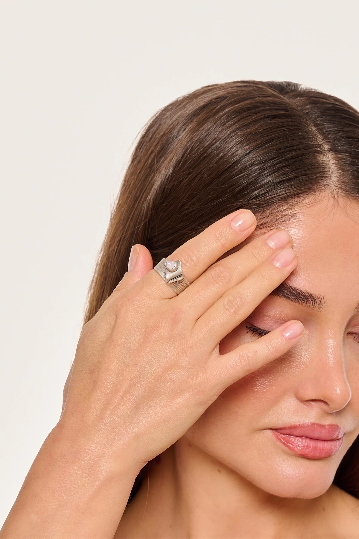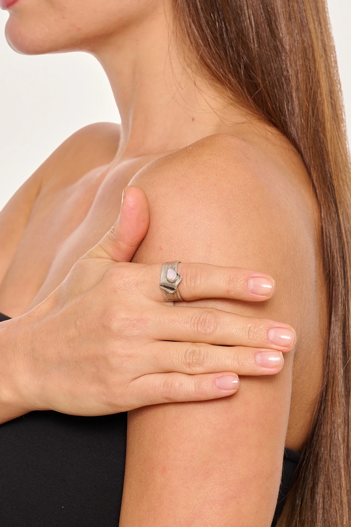 Kiraz Pink Crystal Stoned Silver Plated Ring