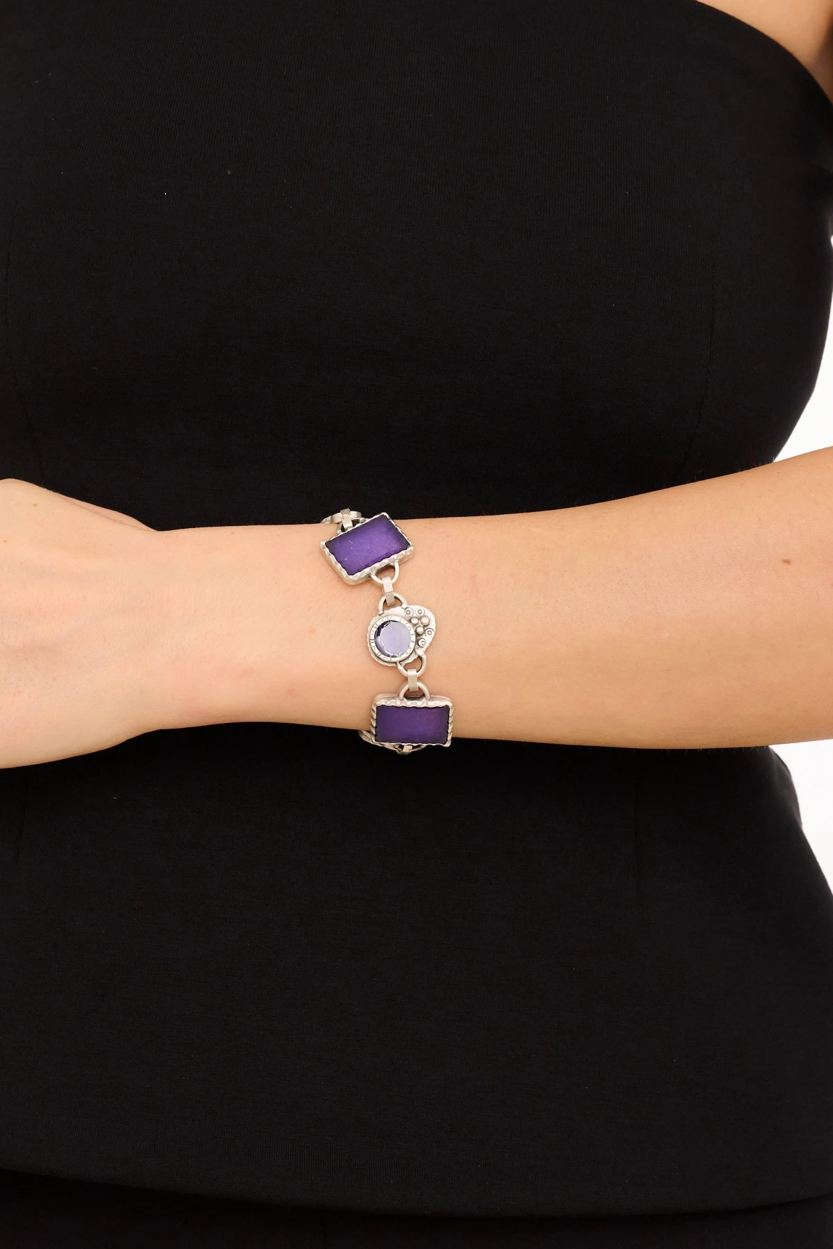 Kiraz Purple Enameled Silver Plated Bracelet