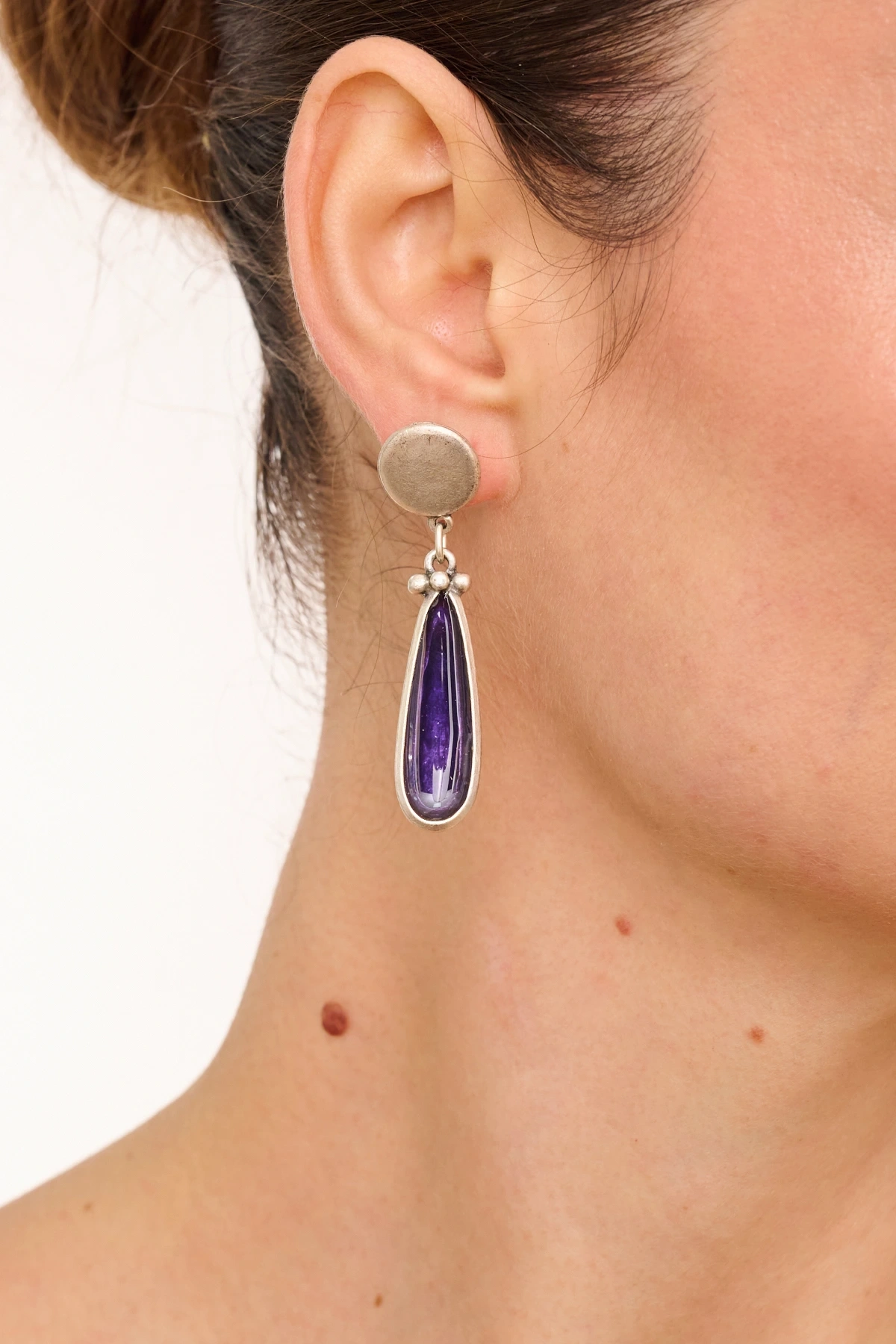 Kiraz Purple Enameled Silver Plated Earring