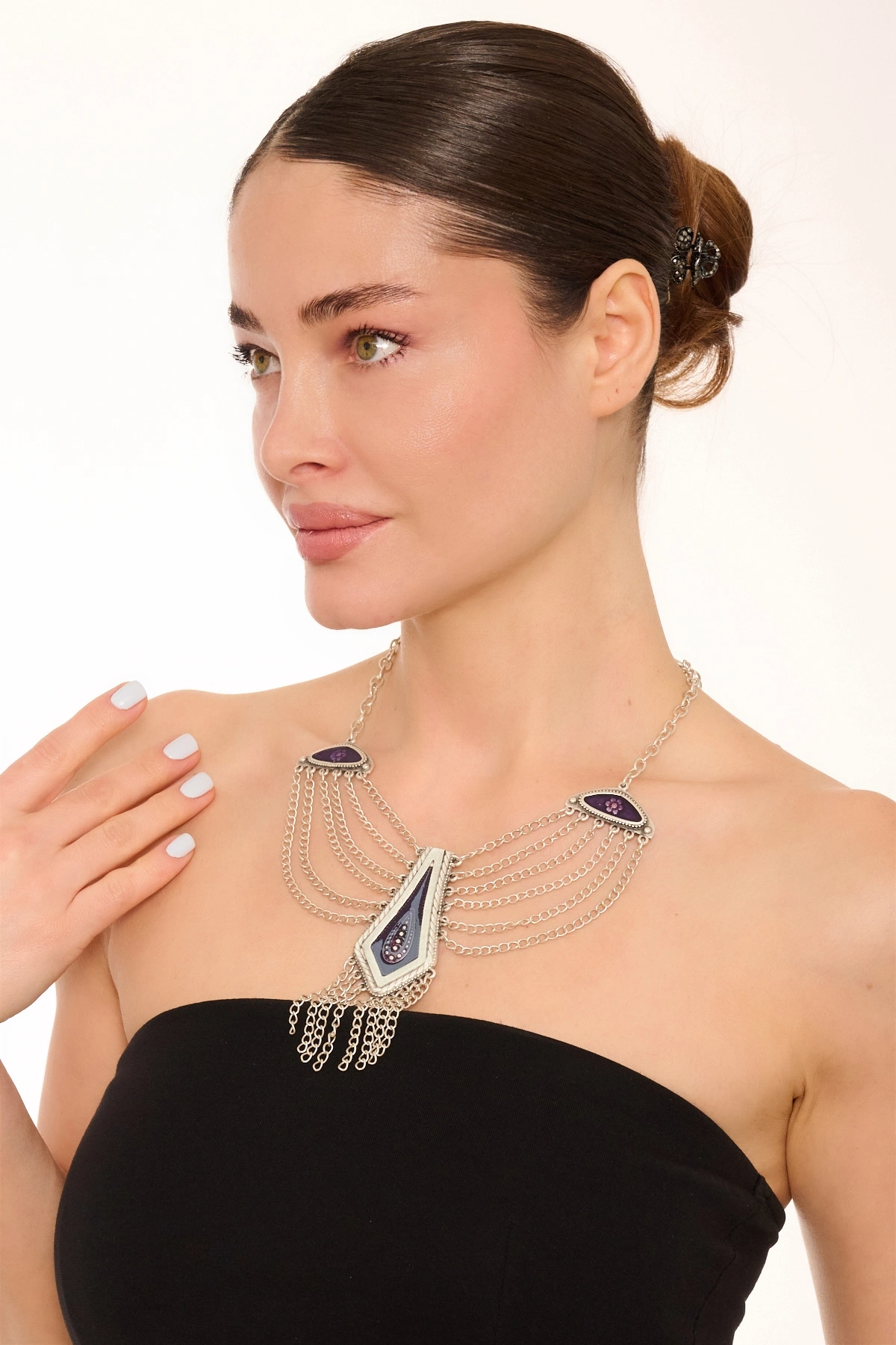 Kiraz Purple Enameled Silver Plated Necklace