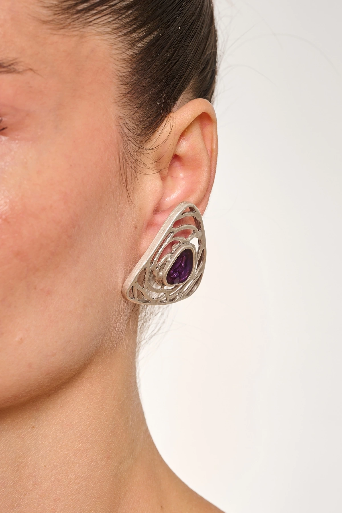 Kiraz Purple Enameled Silver Plated Triangle Earring