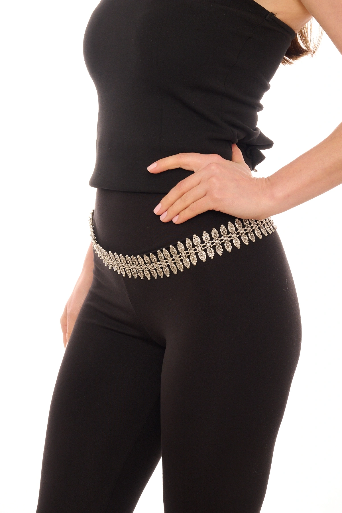 Kiraz Black Stoned Silver Plated Belt