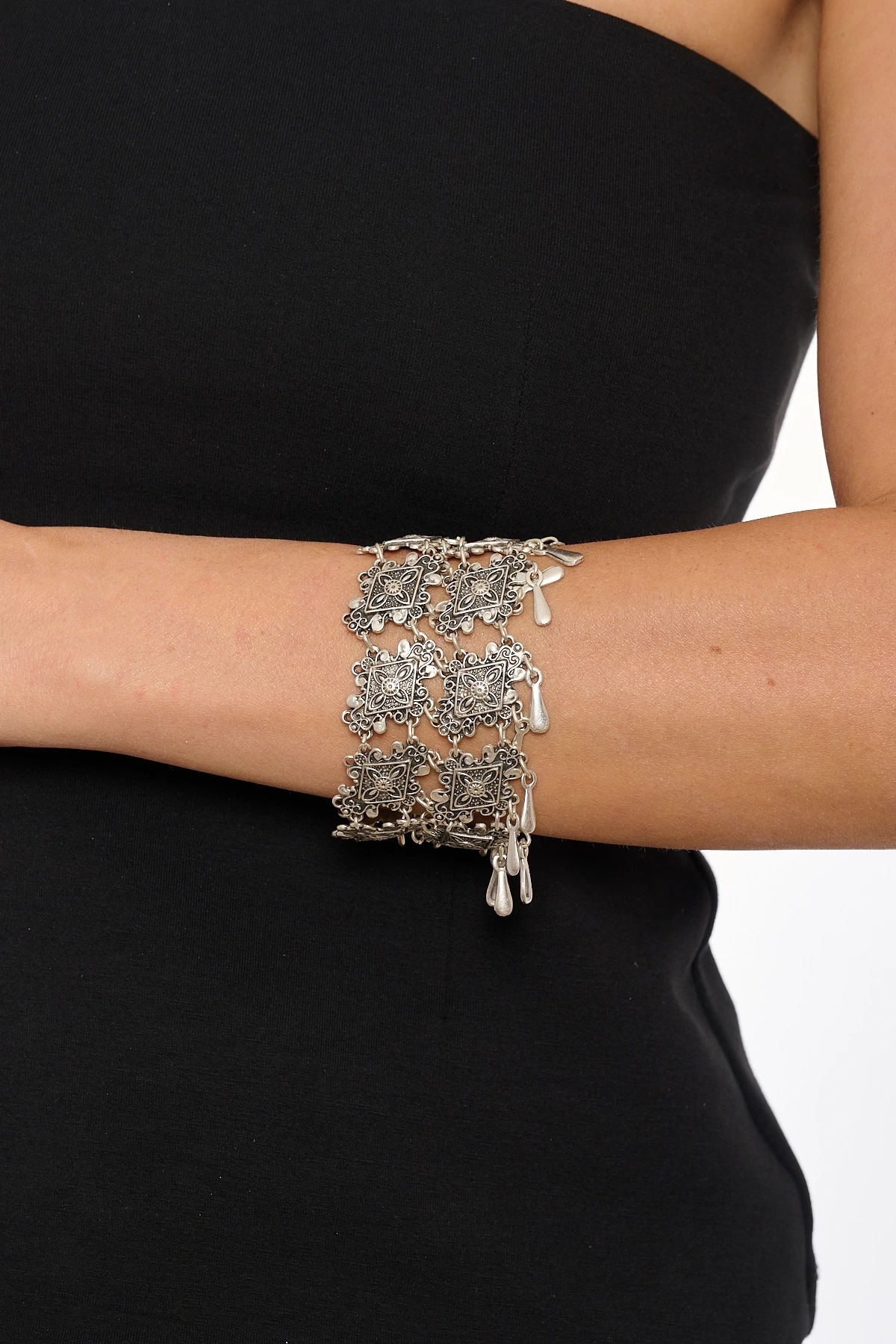 Kiraz Burgundy Stoned Silver Plated Bracelet