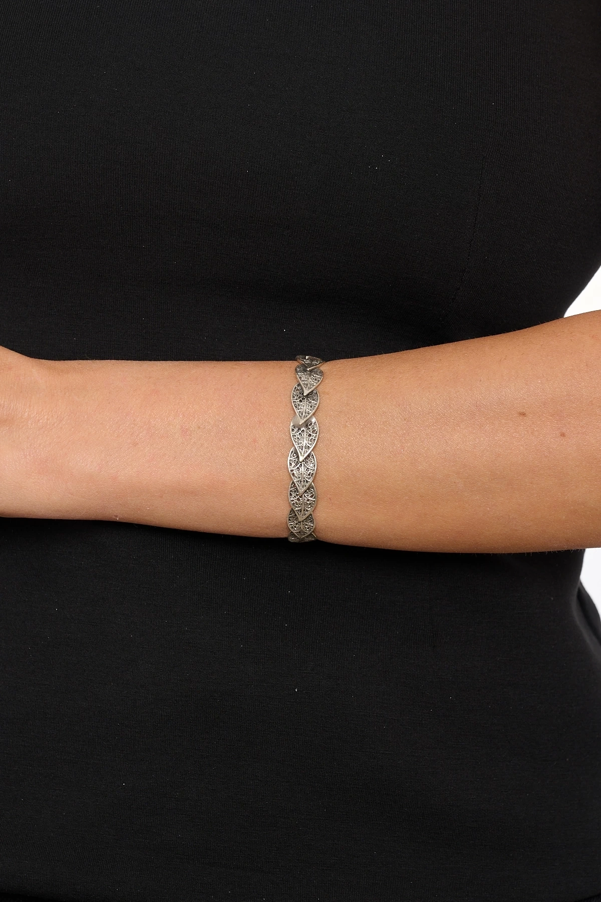 Kiraz Burgundy Stoned Silver Plated Bracelet