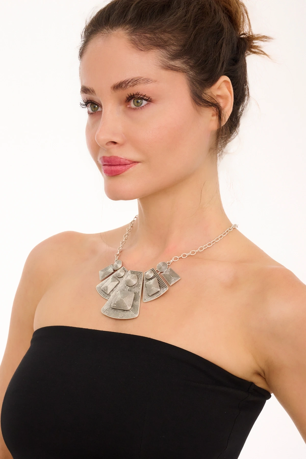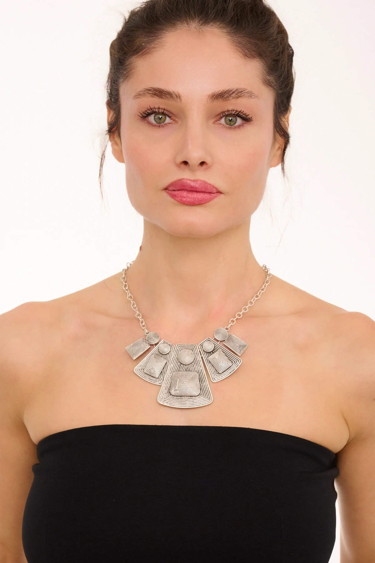 Kiraz Burgundy Enameled Silver Plated Necklace