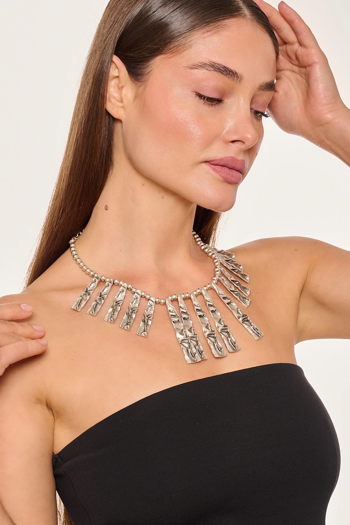 Kiraz Black Beaded Silver Plated Necklace