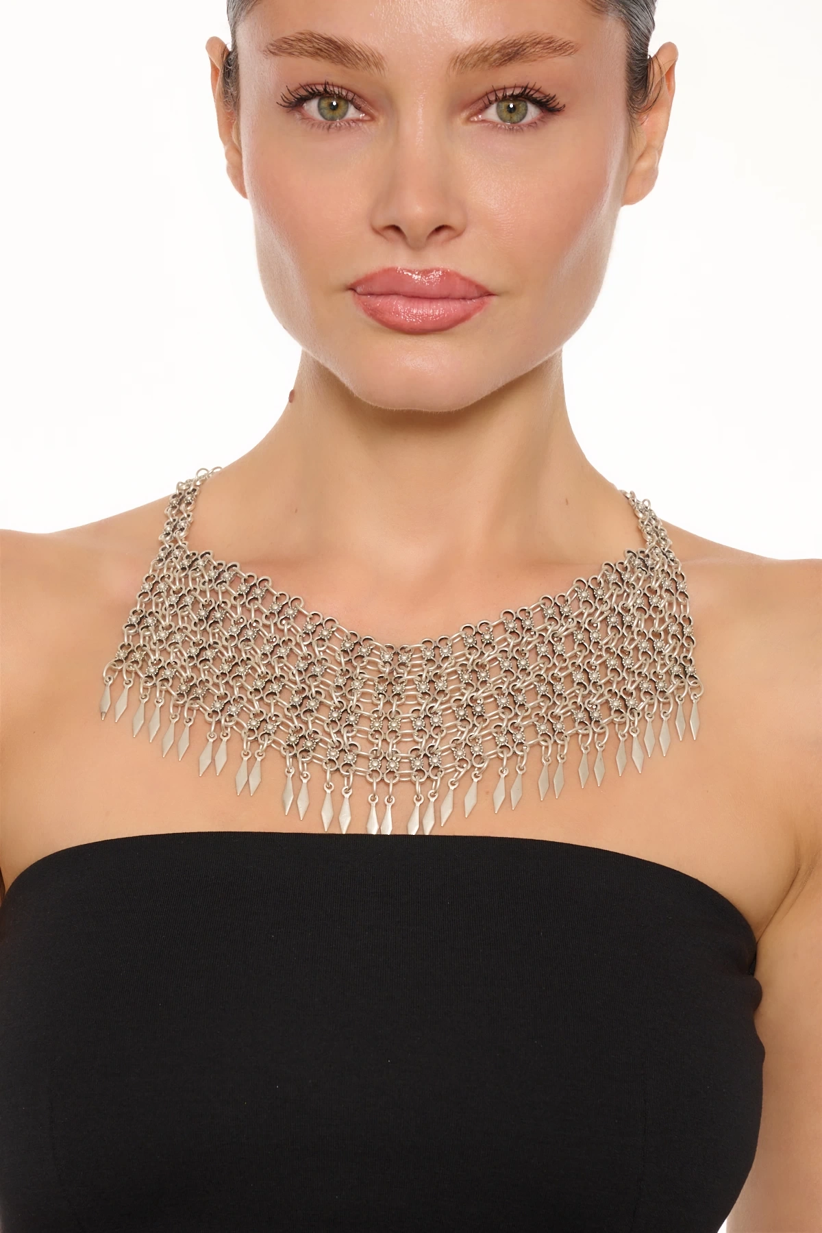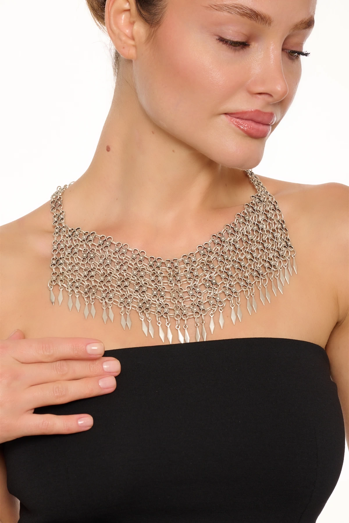 Kiraz Black Crystal Stoned Silver Plated Lightning Necklace