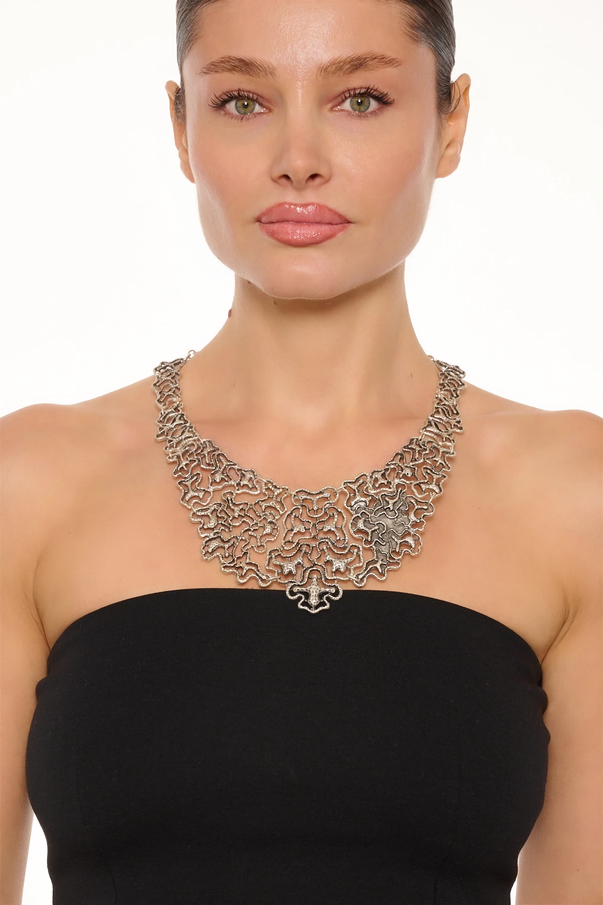 Kiraz Black Crystal Stoned Silver Plated Lightning Necklace