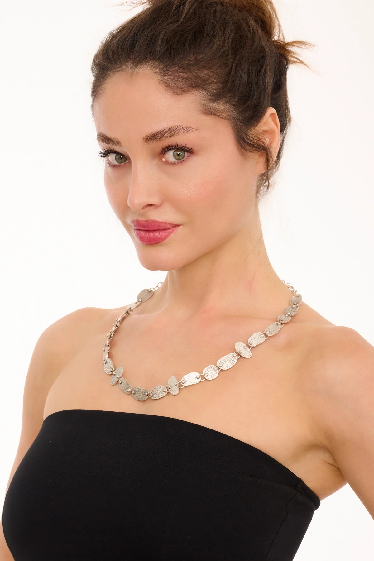 Kiraz Leather White Crystal Stoned Silver Plated Necklace