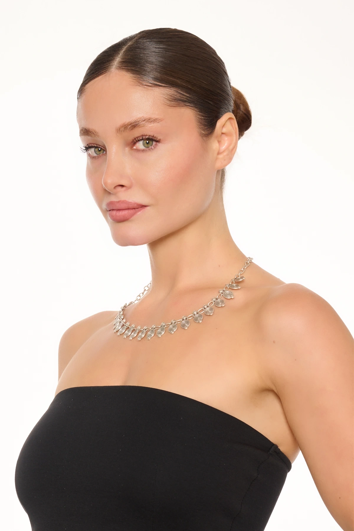 Kiraz White Crystal Stoned Silver Plated Lightning Necklace