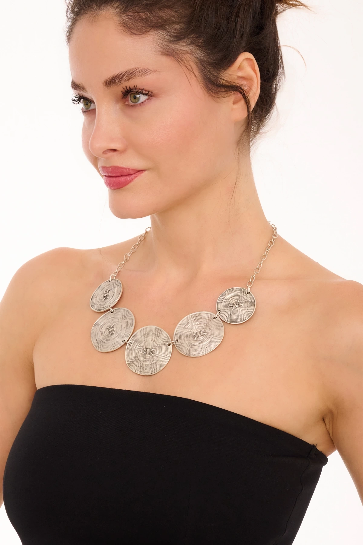 Kiraz Burgundy Enameled Silver Plated Necklace