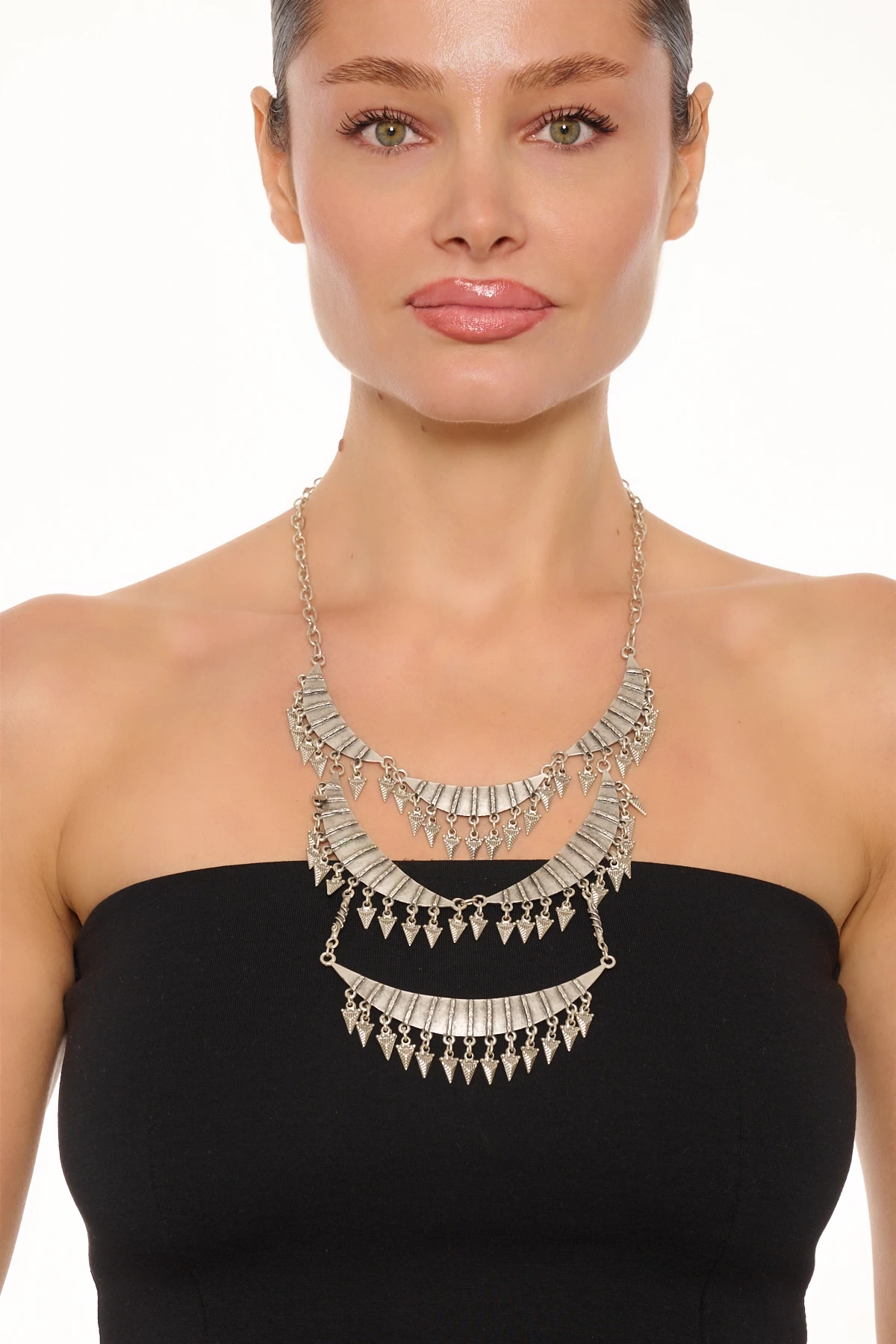 Kiraz Black Crystal Stoned Silver Plated Lightning Necklace