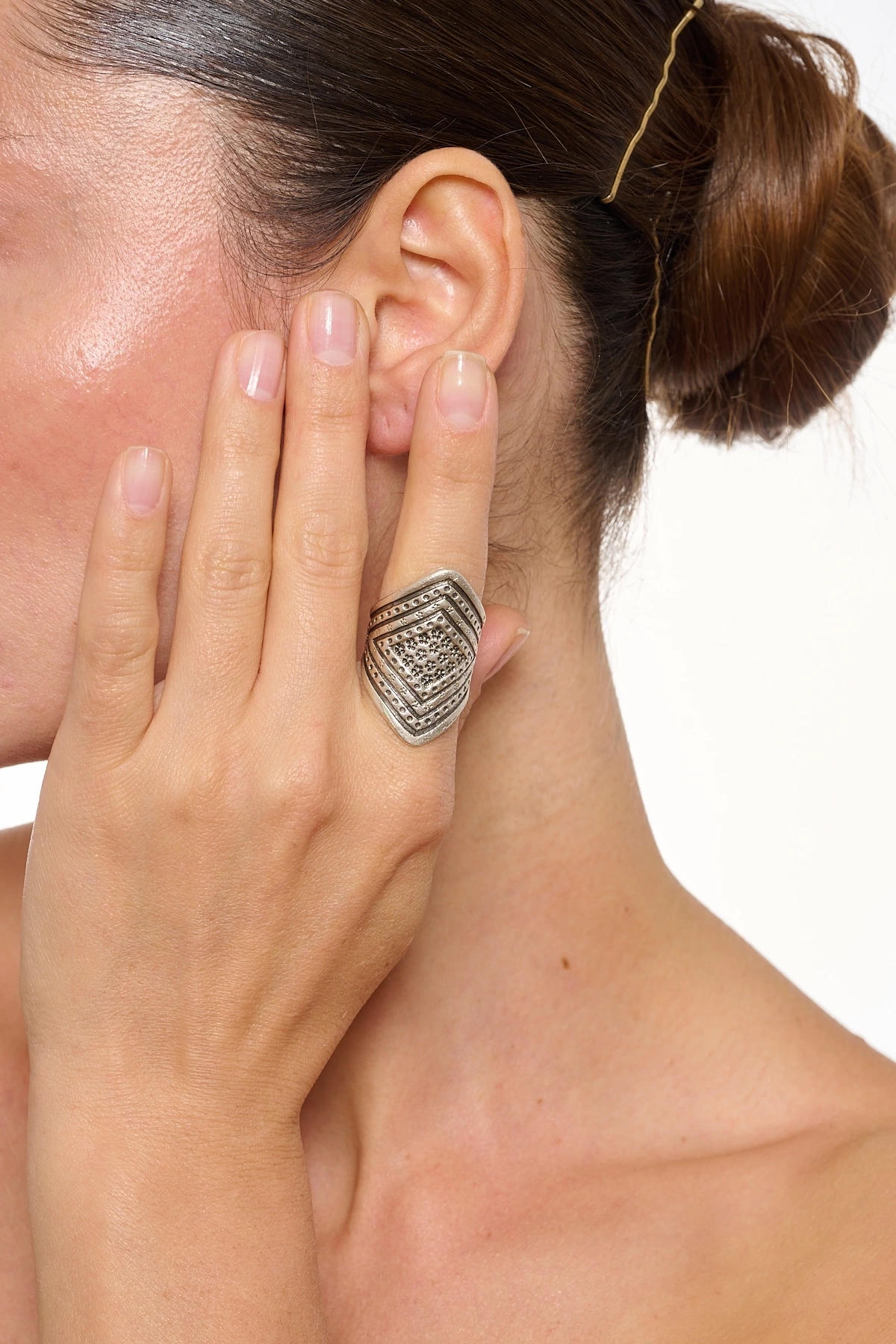 Kiraz Black Crystal Stoned Silver Plated Ring