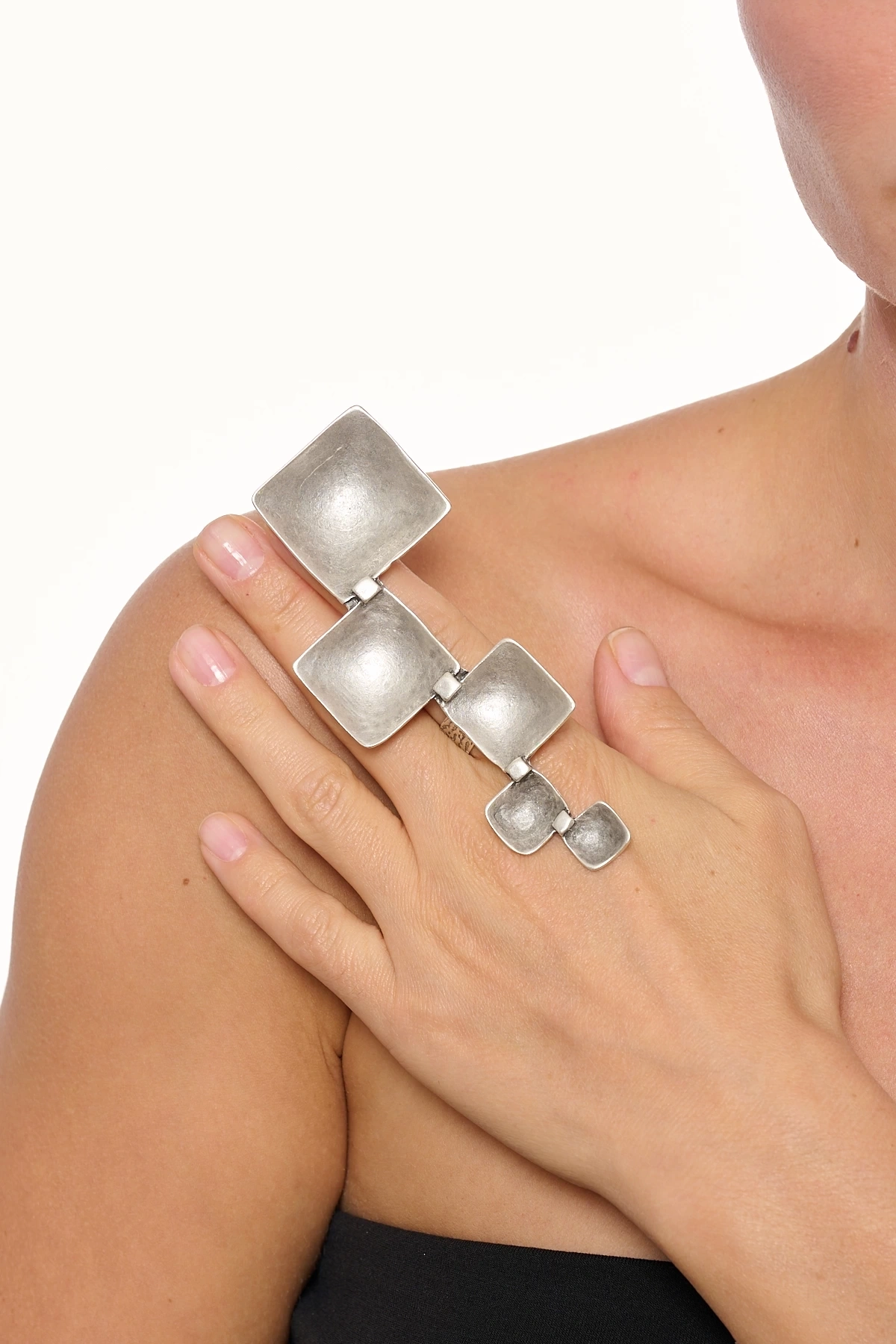 Kiraz Smoked Crystal Stoned Silver Plated Ring