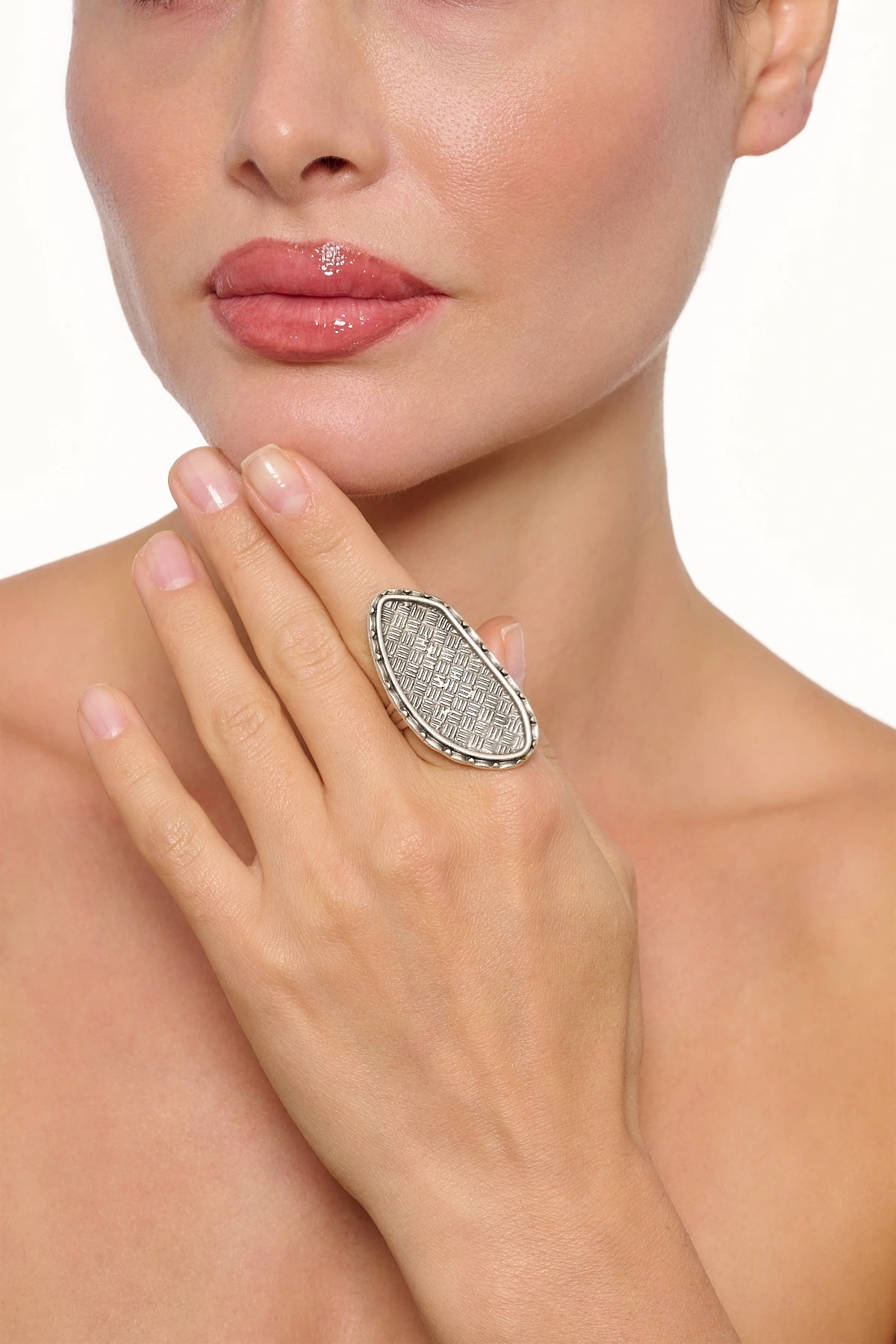 Kiraz Black Crystal Stoned Silver Plated Ring