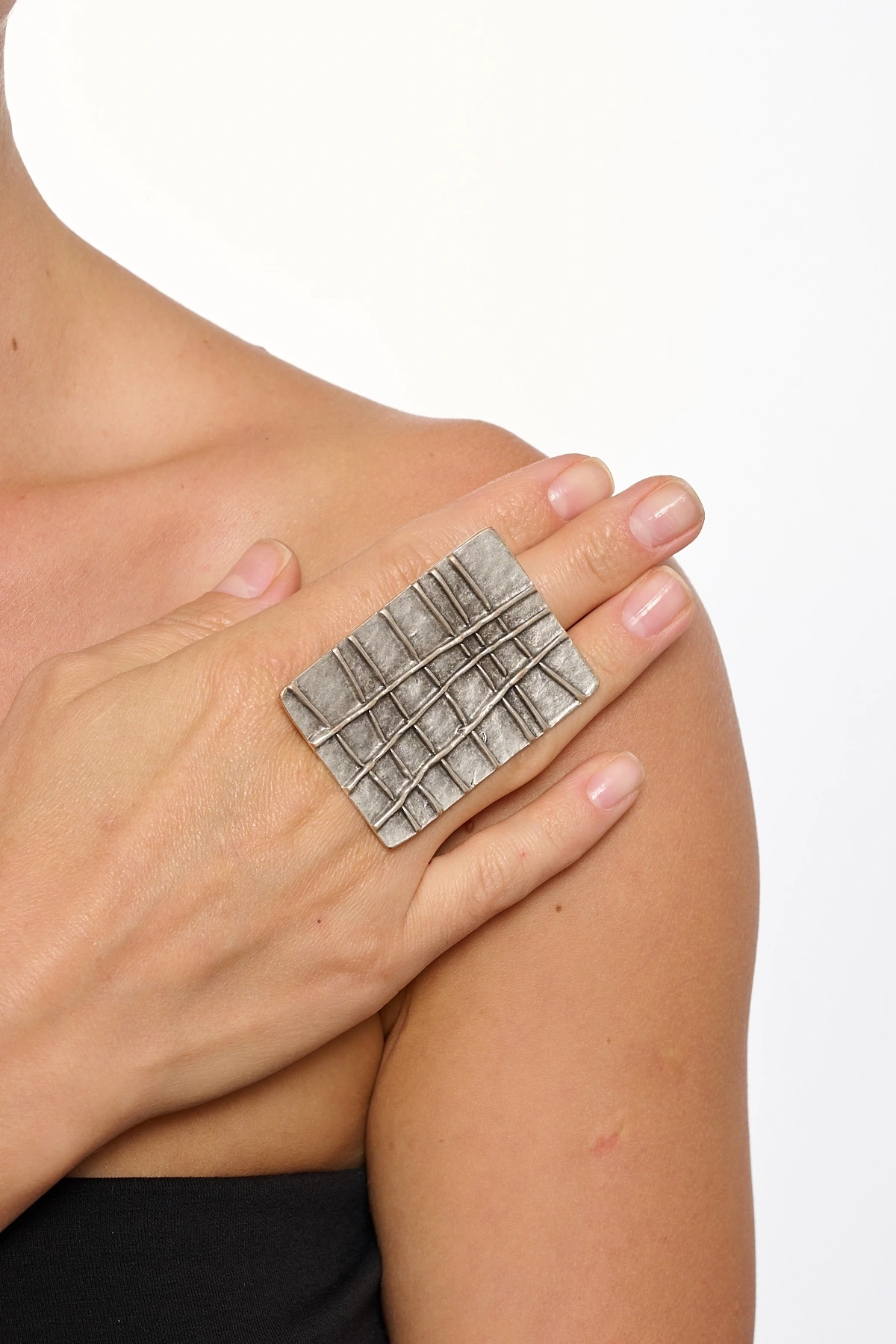 Kiraz Smoked Crystal Stoned Silver Plated Ring