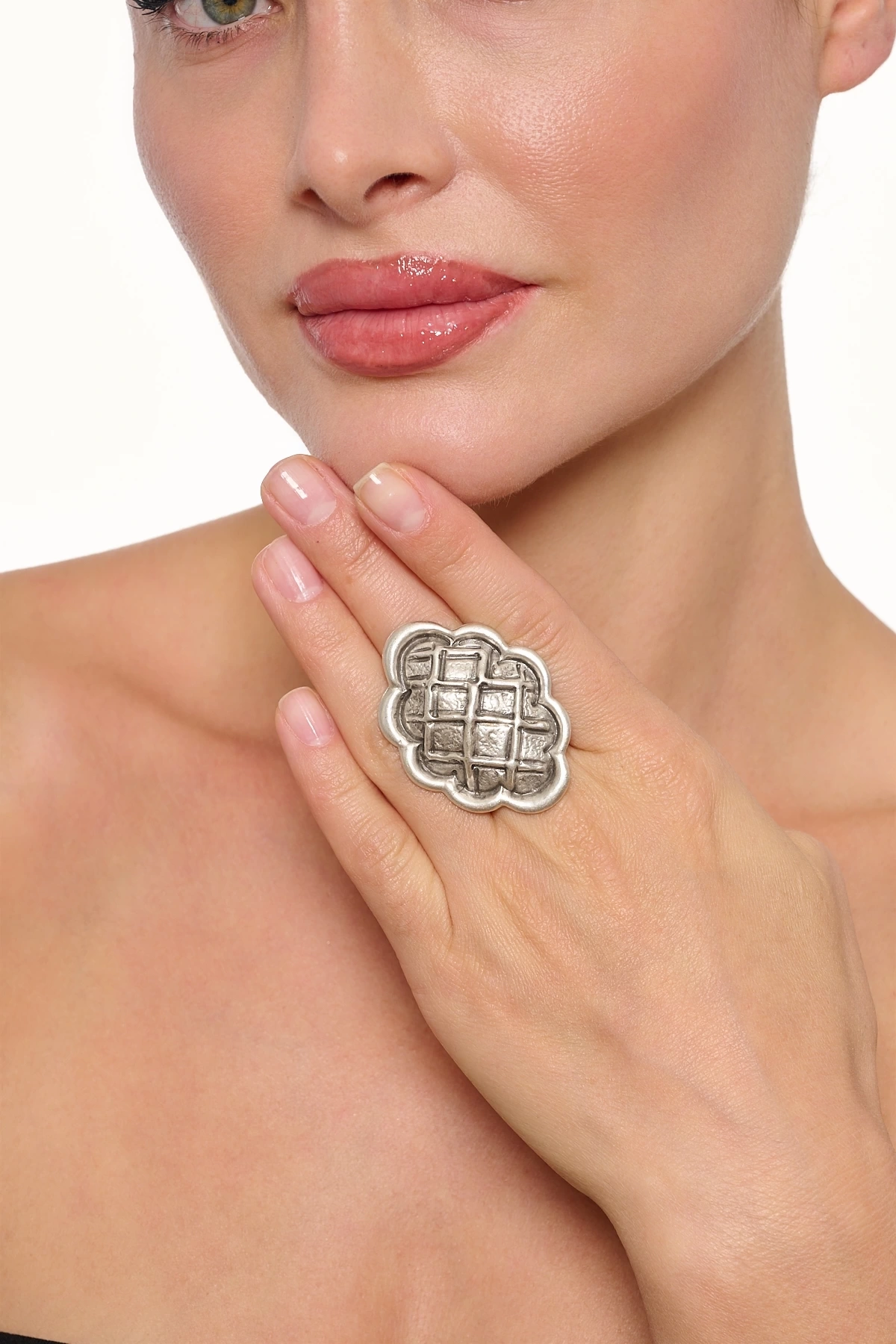 Kiraz Smoked Crystal Stoned Silver Plated Ring