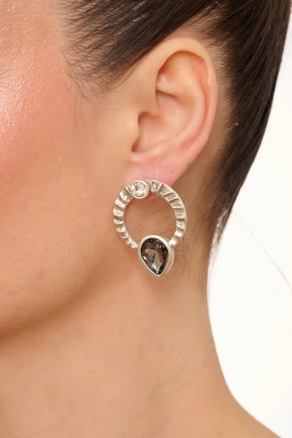 Kiraz Smoked Crystal Stoned Silver Plated Earring