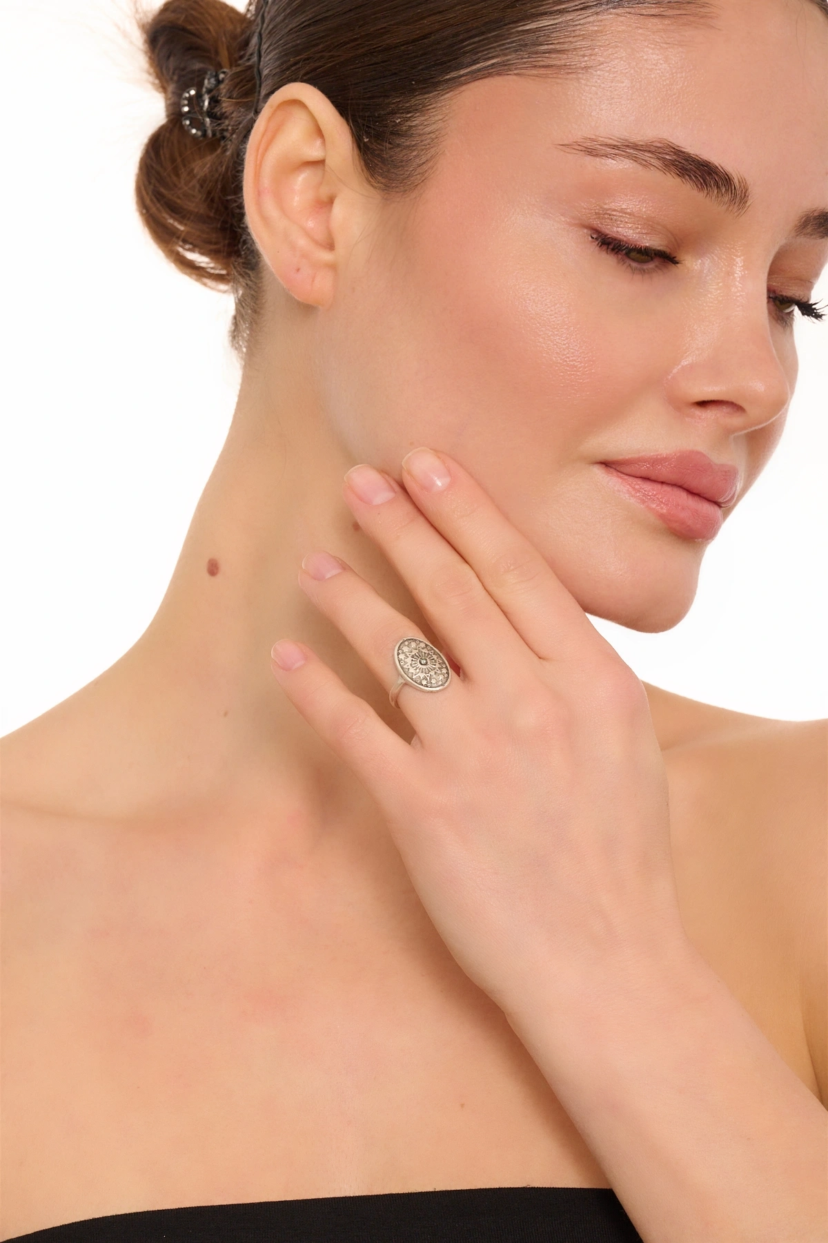Kiraz Evil Eye Stoned Silver Plated Ring