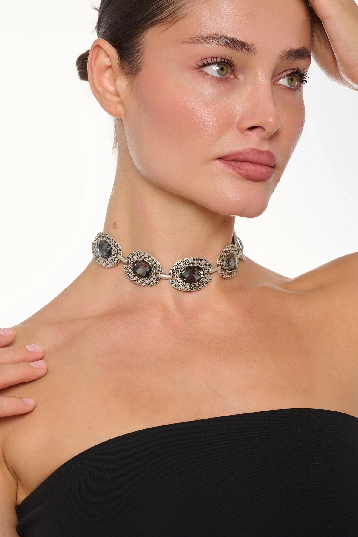 Kiraz Burgundy Stoned Silver Plated Necklace