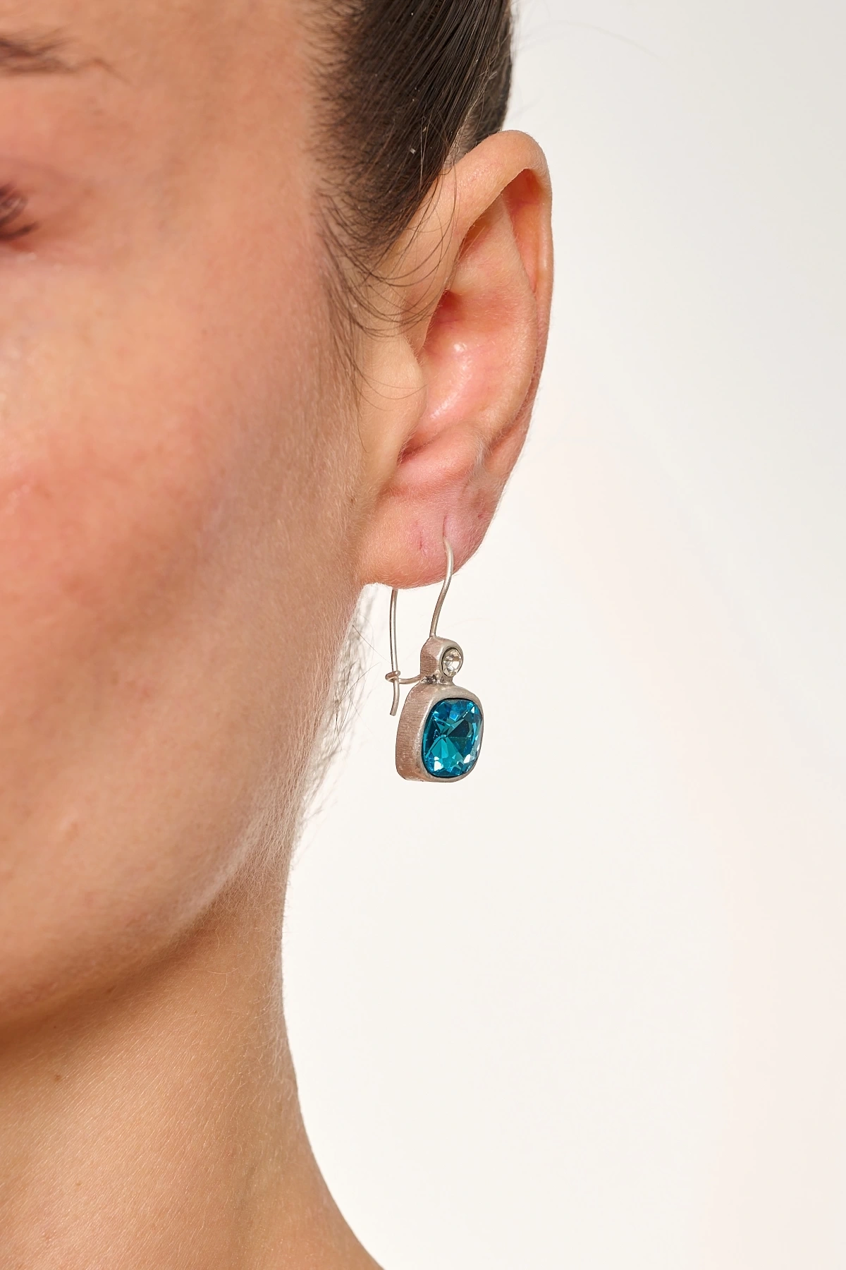 Kiraz Turquoise Crystal Stoned Silver Plated Earring