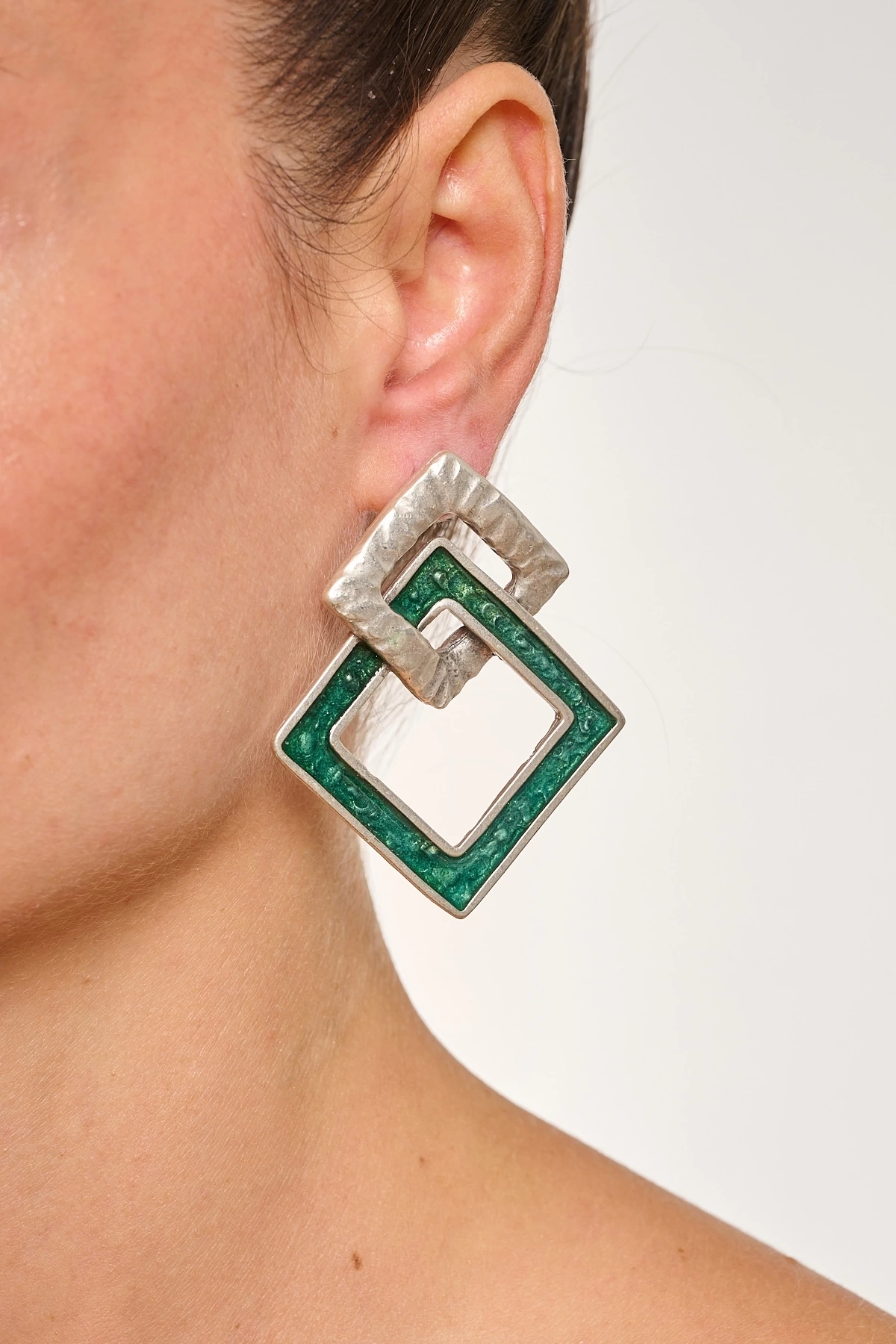 Kiraz Turquoise Enameled Silver Plated Earring