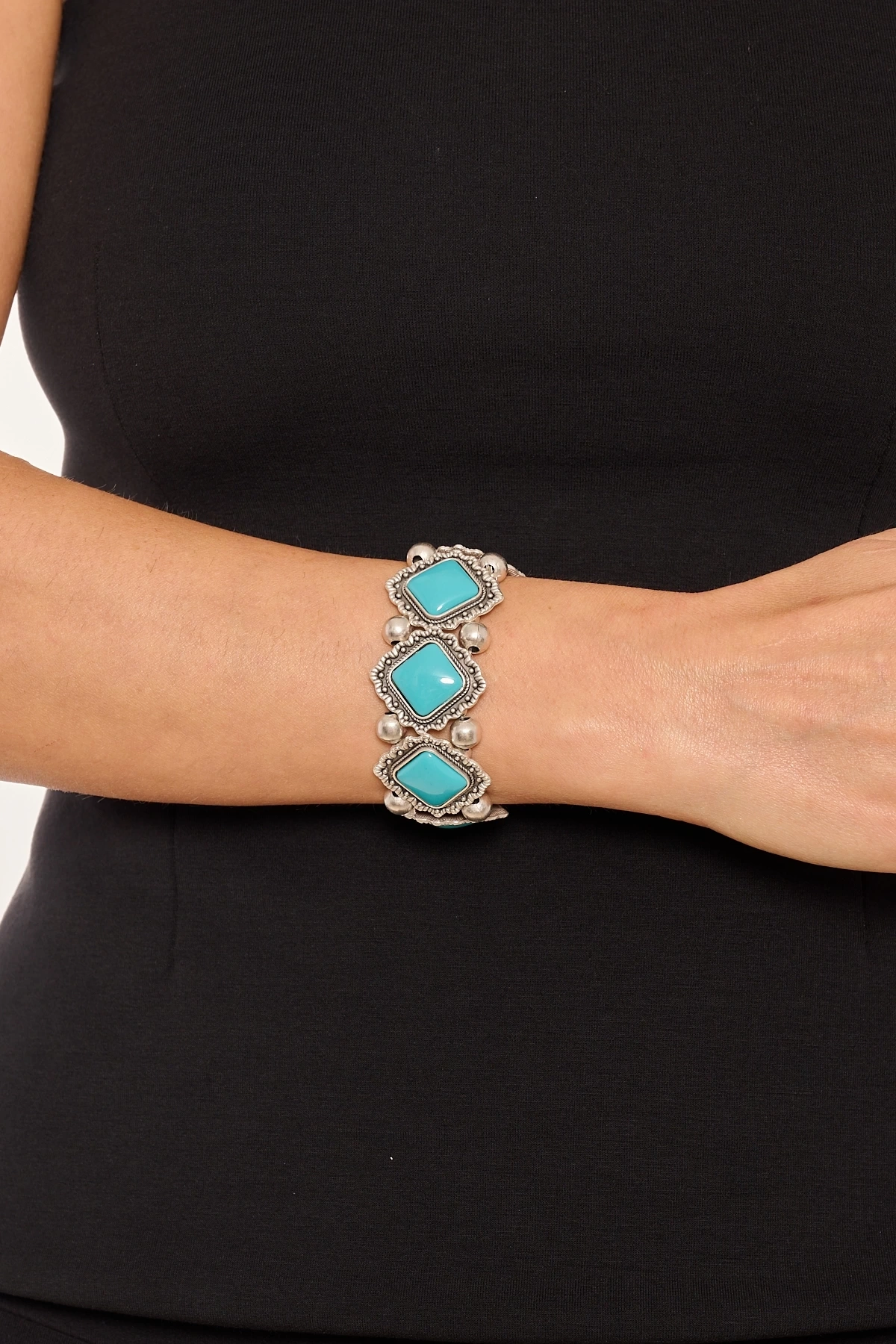 Kiraz Turquoise Stoned Elastic Silver Plated Bracelet