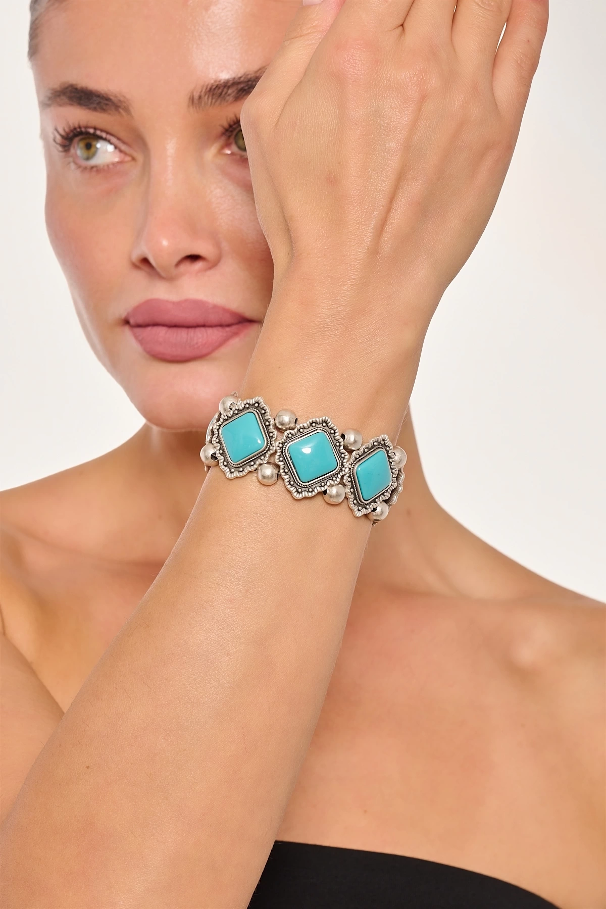 Kiraz Turquoise Stoned Silver Plated Bracelet