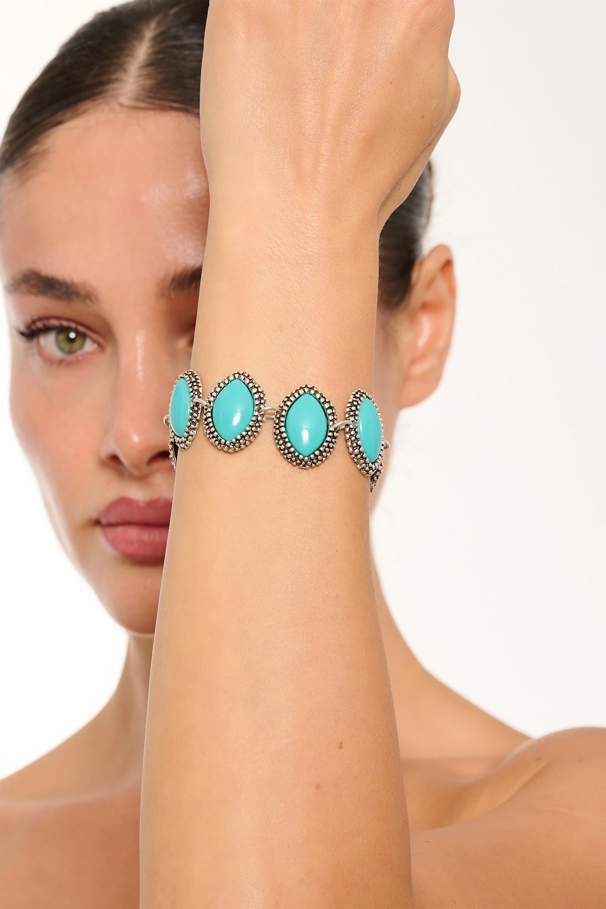 Kiraz Turquoise Stoned Silver Plated Almond Bracelet