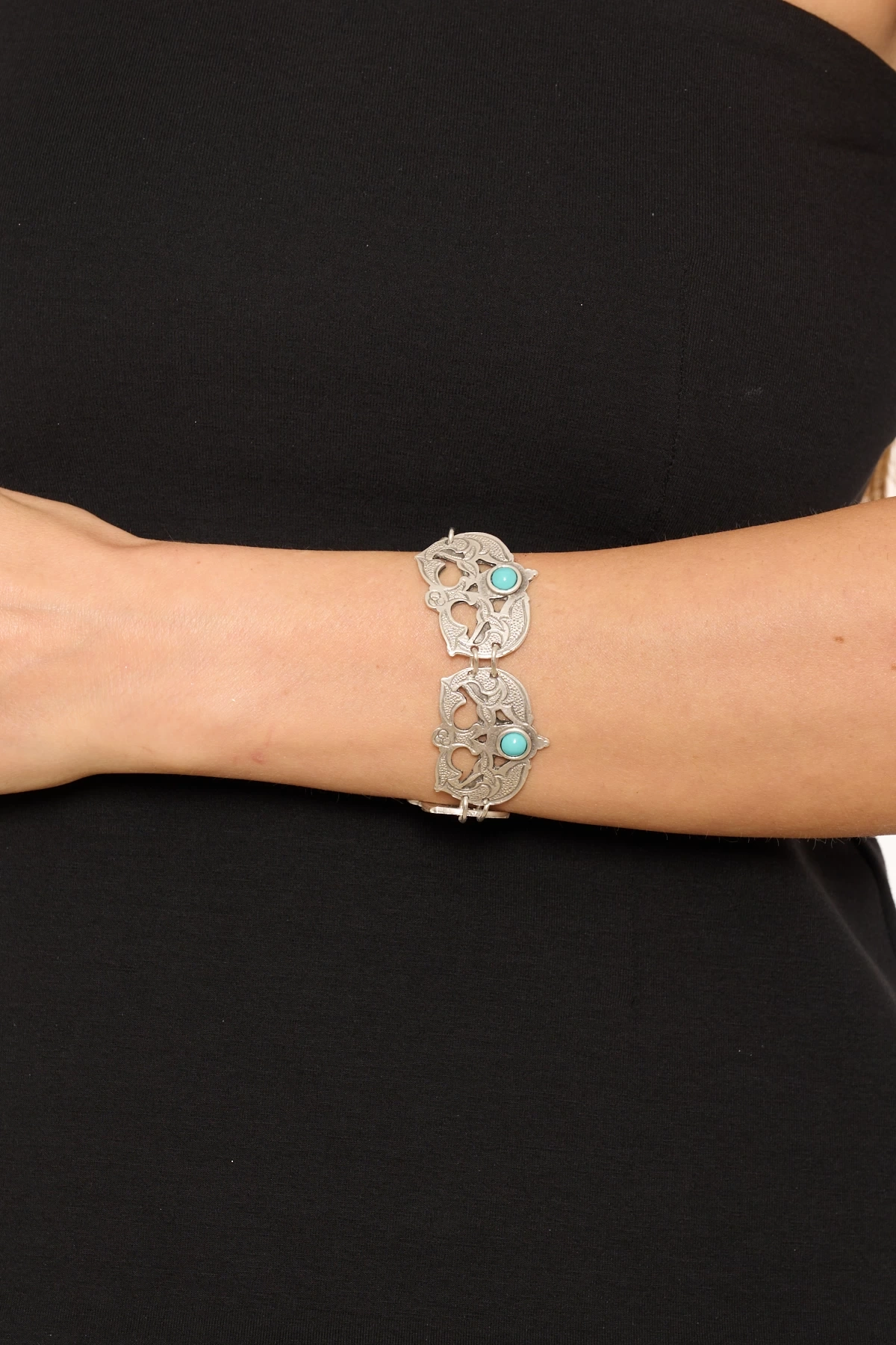 Kiraz Turquoise Stoned Silver Plated Bracelet