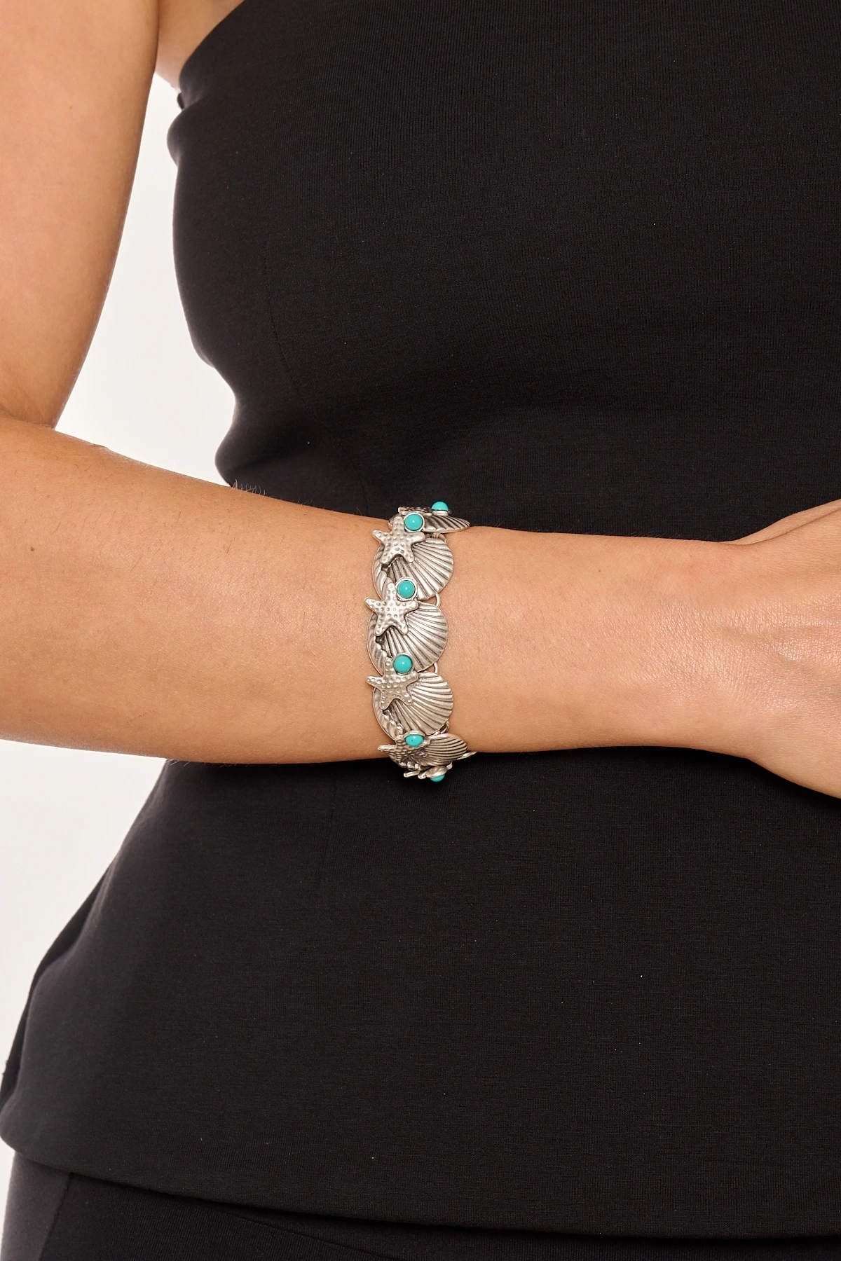 Kiraz Turquoise Stoned Silver Plated Seasehll Bracelet