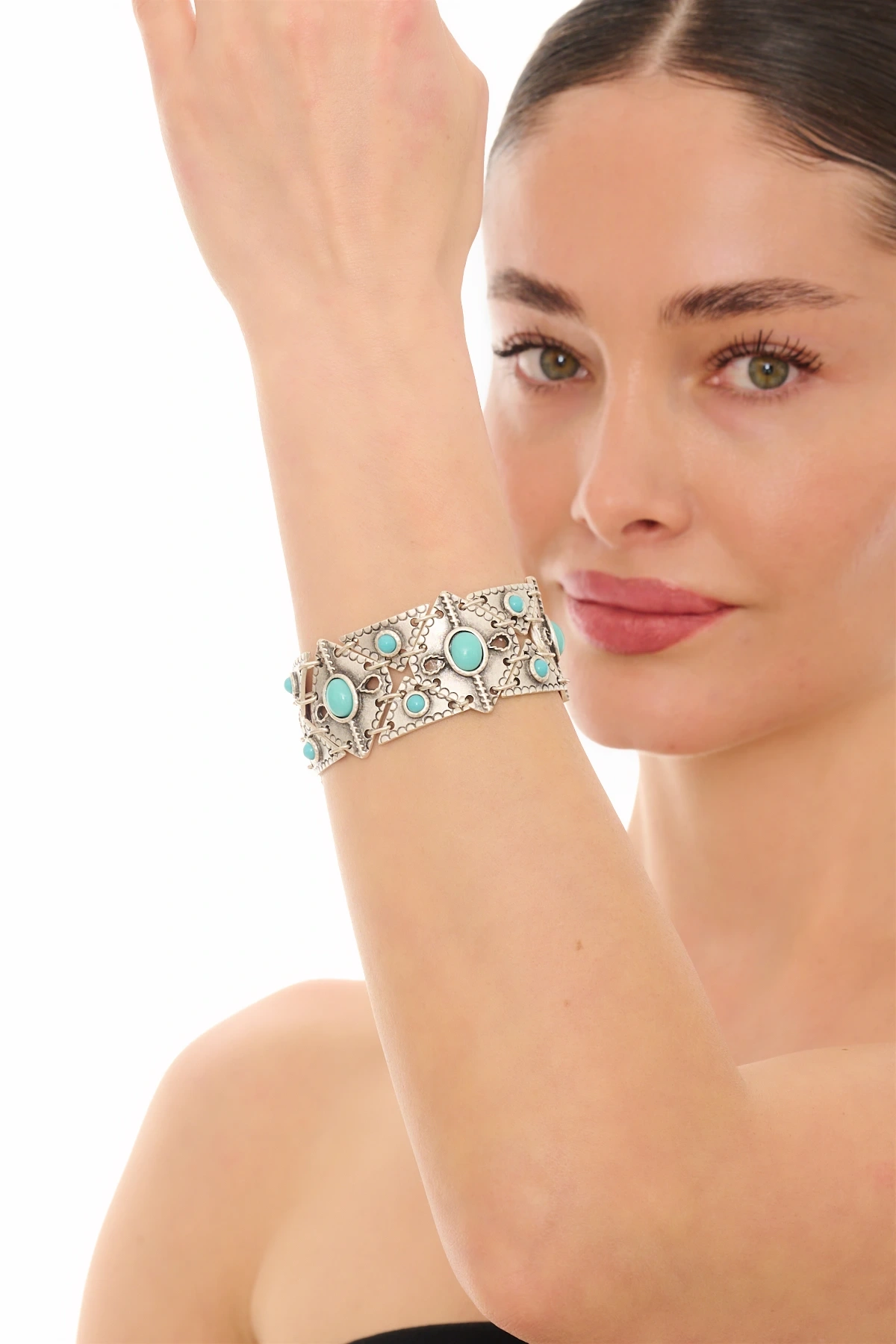 Kiraz Turquoise Stoned Silver Plated Bracelet