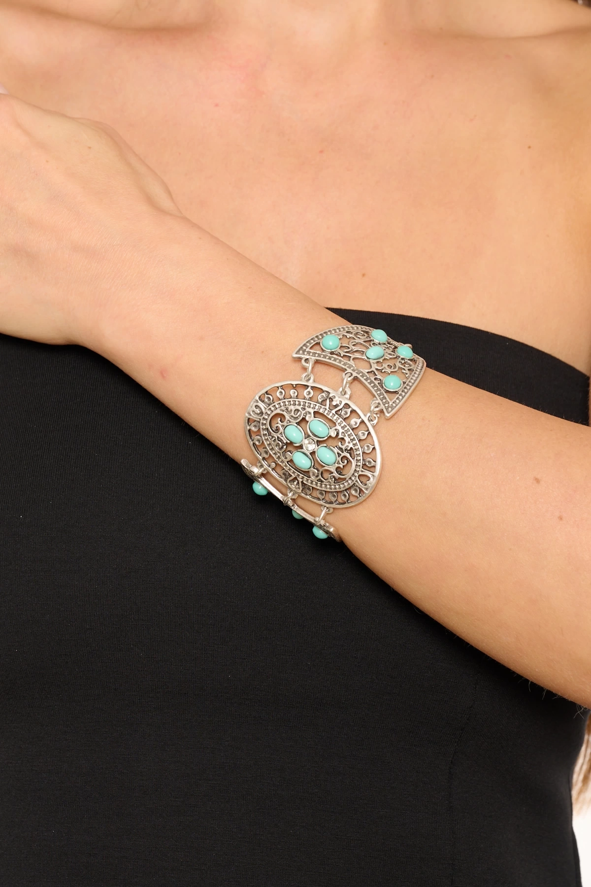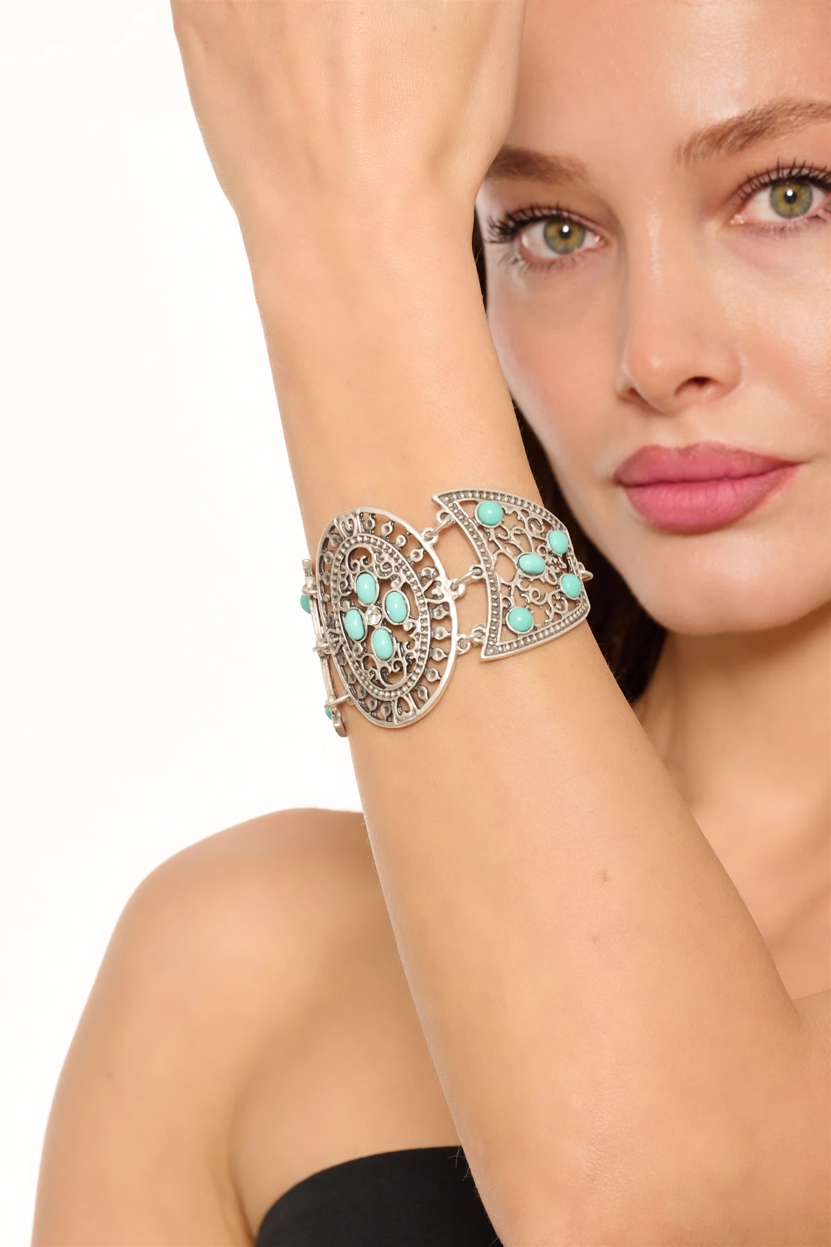 Kiraz Turquoise Stoned Silver Plated Bracelet