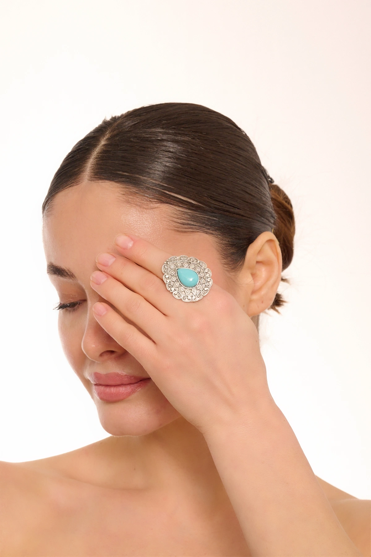 Kiraz Turquoise Stoned Silver Plated Drop Ring