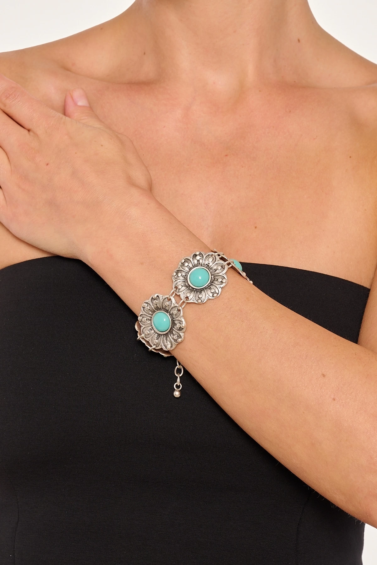 Kiraz Turquoise Stoned Silver Plated Flower Bracelet