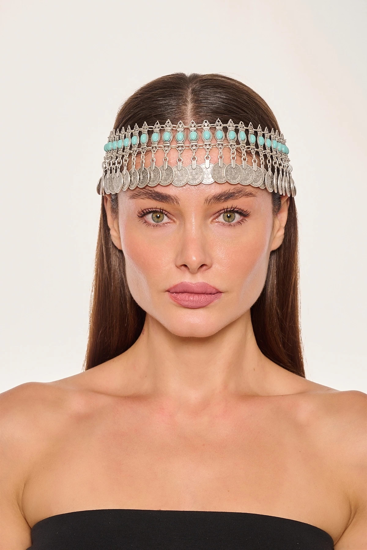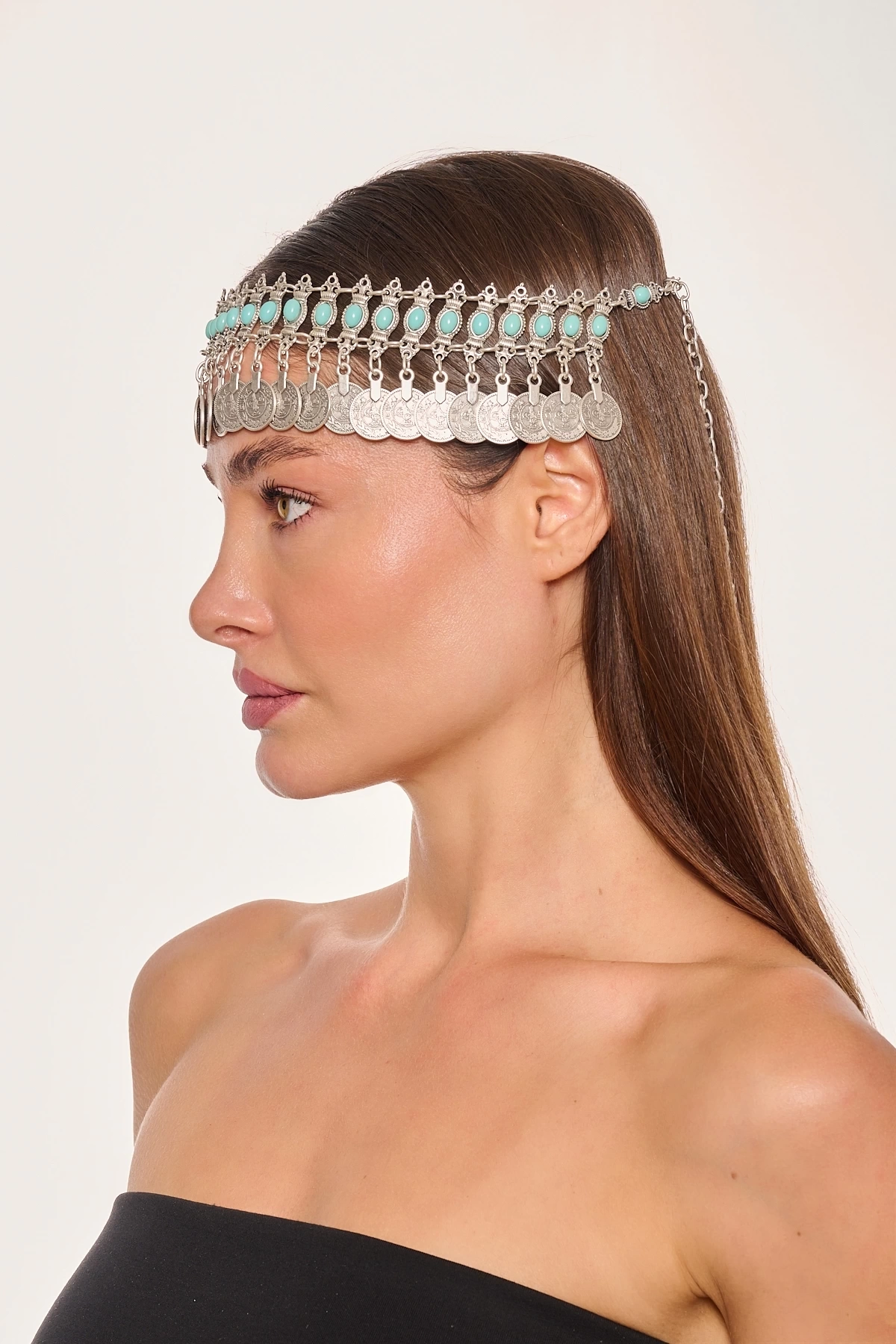 Kiraz Turquoise Stoned Silver Plated Head Accessory