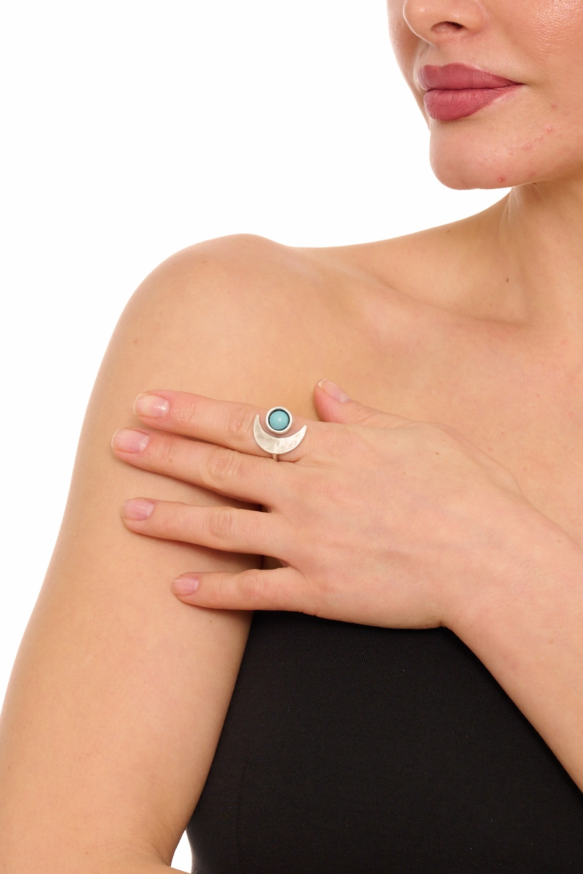 Kiraz Turquoise Stoned Silver Plated Moon Ring