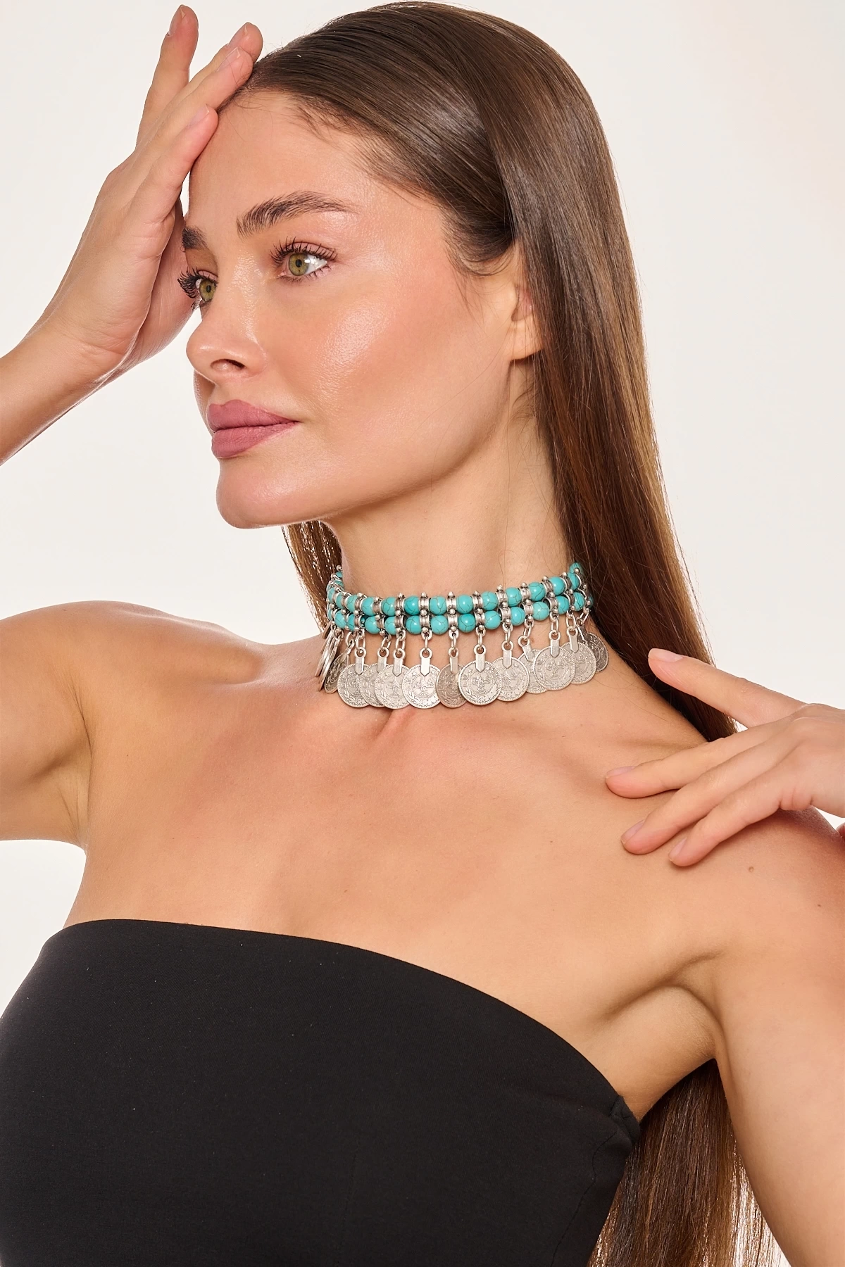 Kiraz Turquoise Beaded Silver Plated Necklace