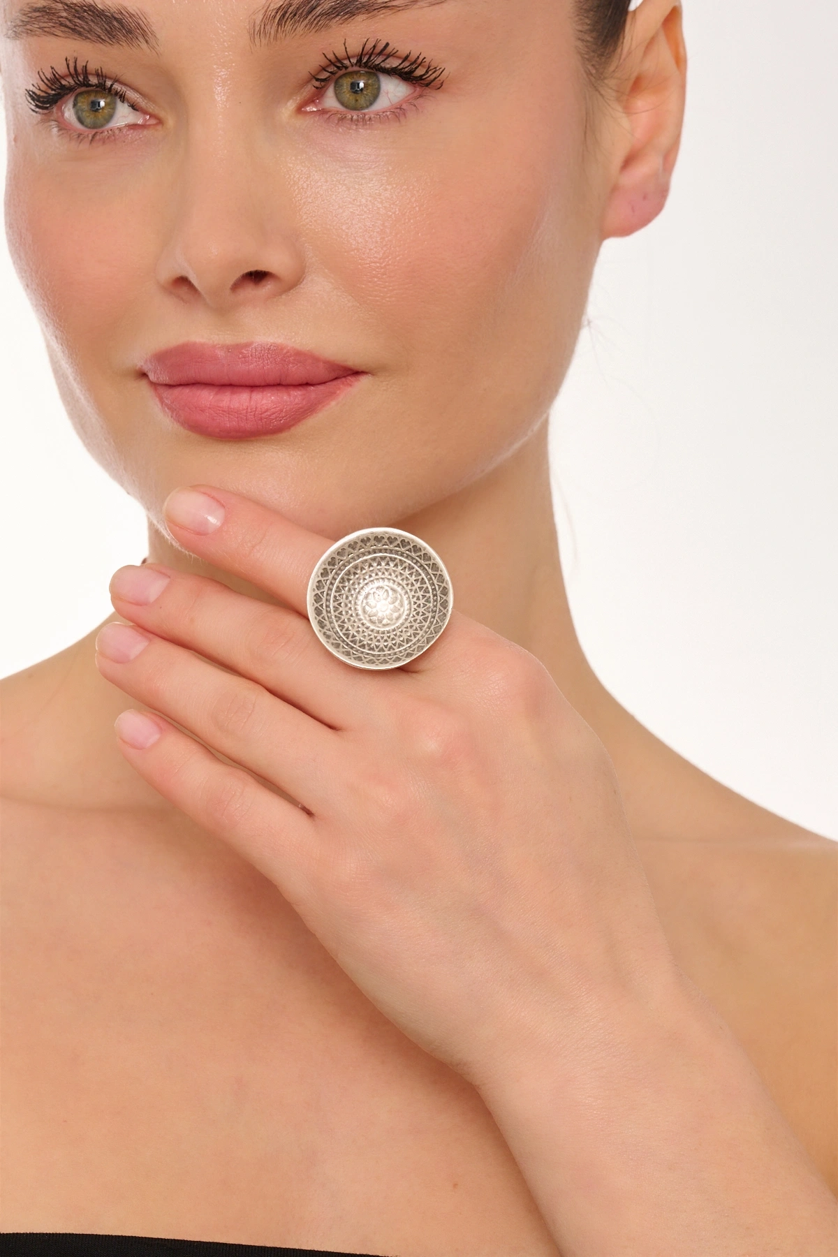 Kiraz Turquoise Stoned Silver Plated Eye Ring